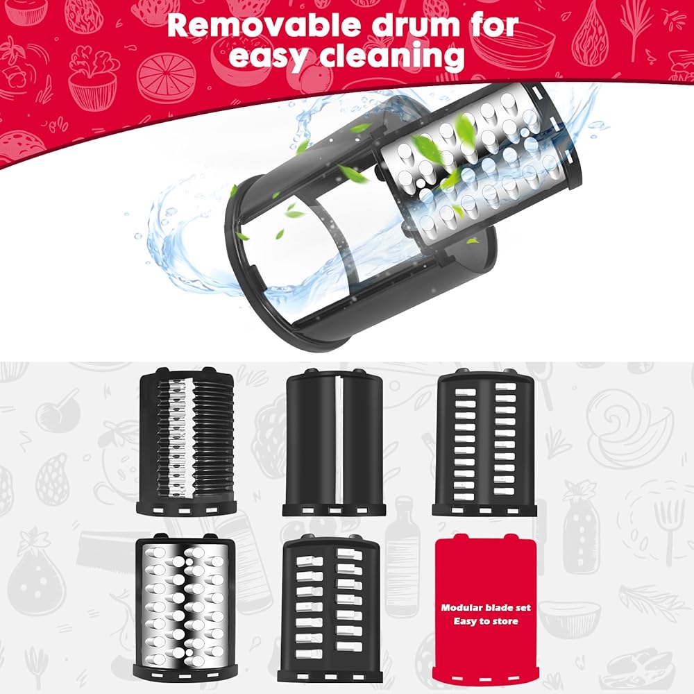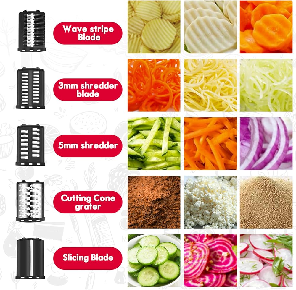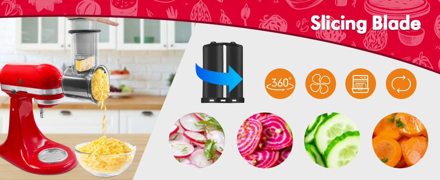 - تصميم شفرة من الفولاذ المقاوم للصدأ، لملحقات المطبخ والملحقات، شفرة تقطيع الخيار والكوسا ومبشرة الجبن، وشفرة تقطيع خشنة للجبن والجزر والفطر وشفرة تقطيع دقيقة للمكسرات وطبقات البيتزا.