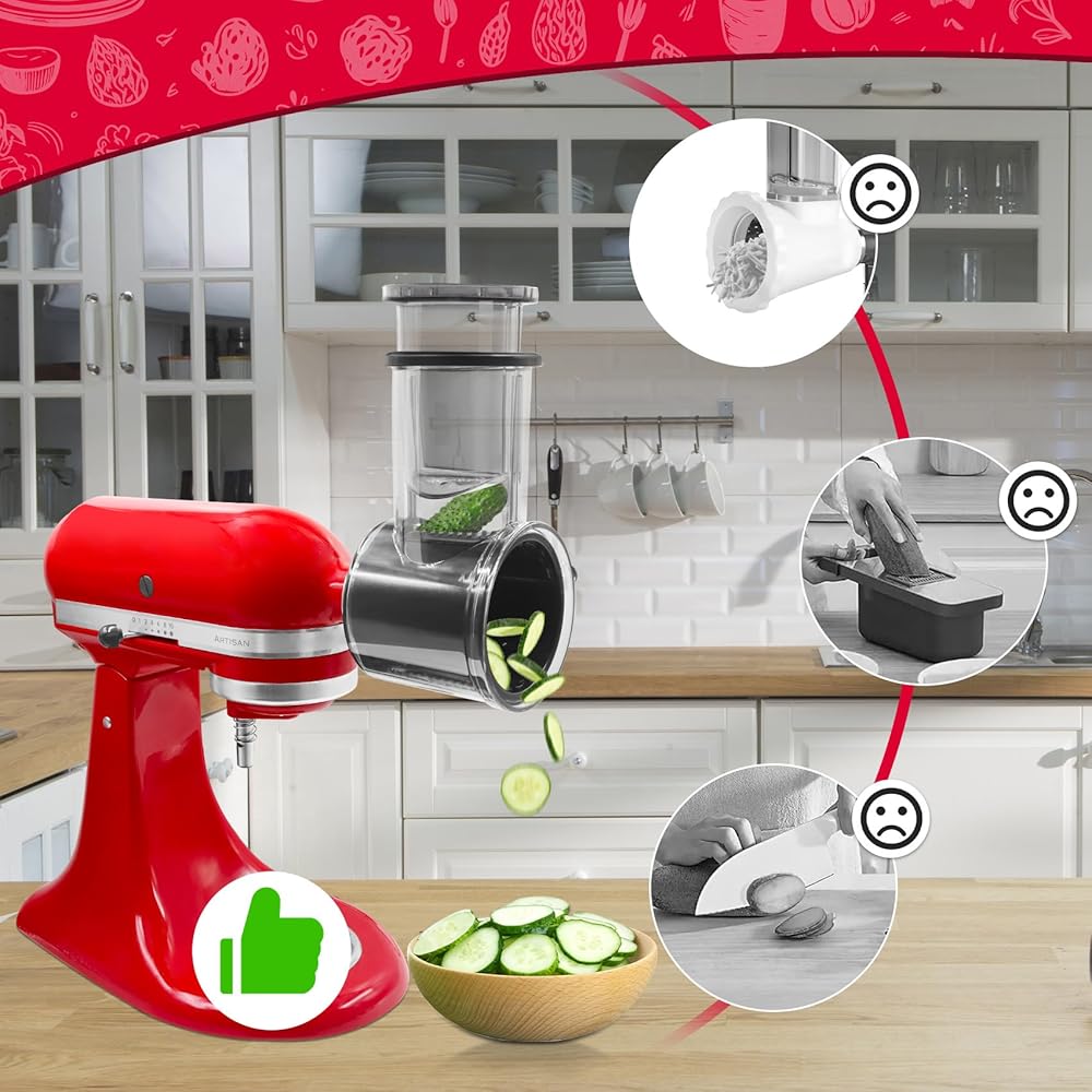 - ملحق التقطيع كيتشن ايد هذا مصنوع من مواد عالية الجودة، قوية ومتينة. يسمح التصميم القابل للفصل بإزالة الشفرات للتنظيف، وتجنب بقايا الطعام على الشفرات.
