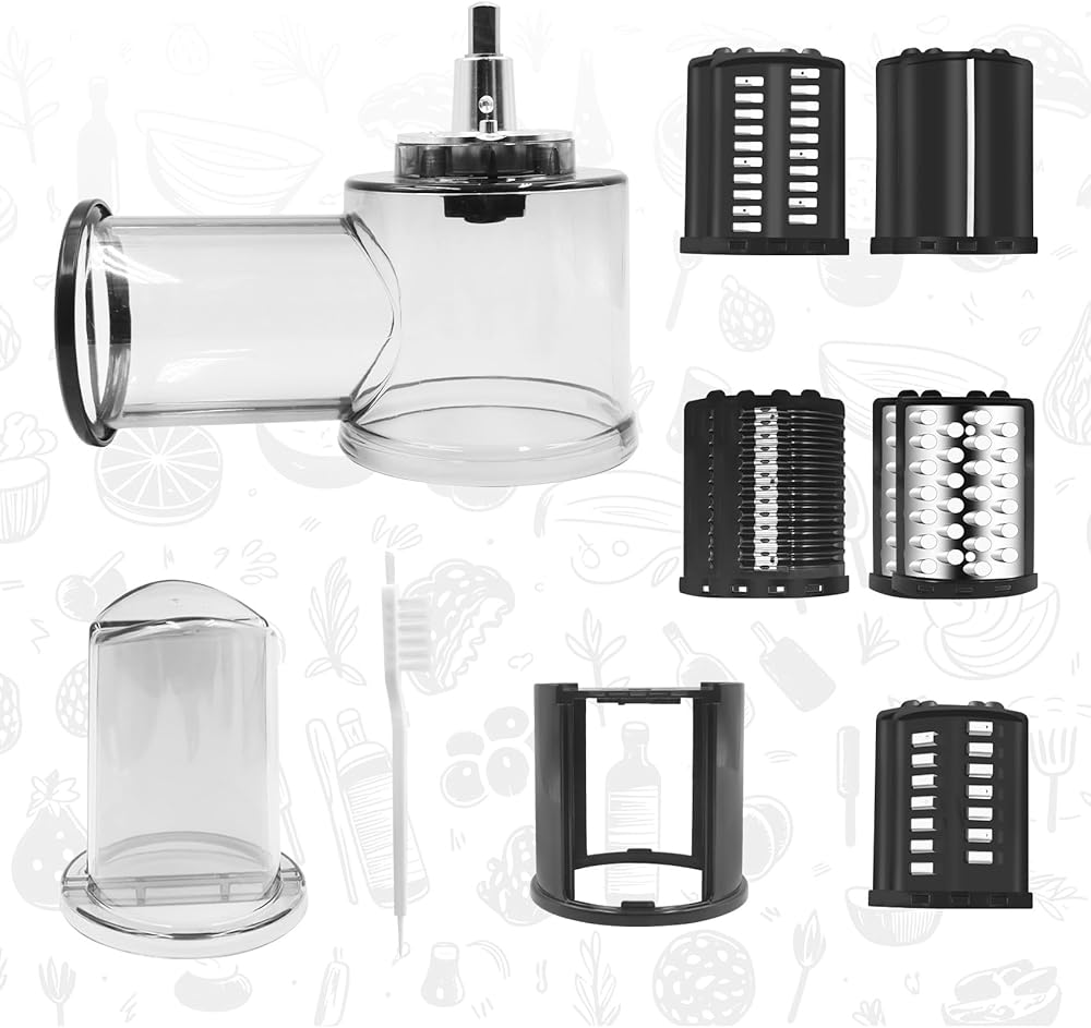 - ملحقات مبشرة الجبن عالية الأداء لخلاط حامل كيتشن ايد، مبشرة الجبن الكهربائية تأتي مع 5 شفرات من الفولاذ المقاوم للصدأ قابلة للتبديل لتلبية احتياجاتك المختلفة. المجموعات الخمس من الشفرات هي شفرة سلكية سميكة، وشفرة سلكية رفيعة، وشفرة شرائح، وشفرة متموجة، وشفرة طحن. 【مرفقات التقطيع فقط!!!】