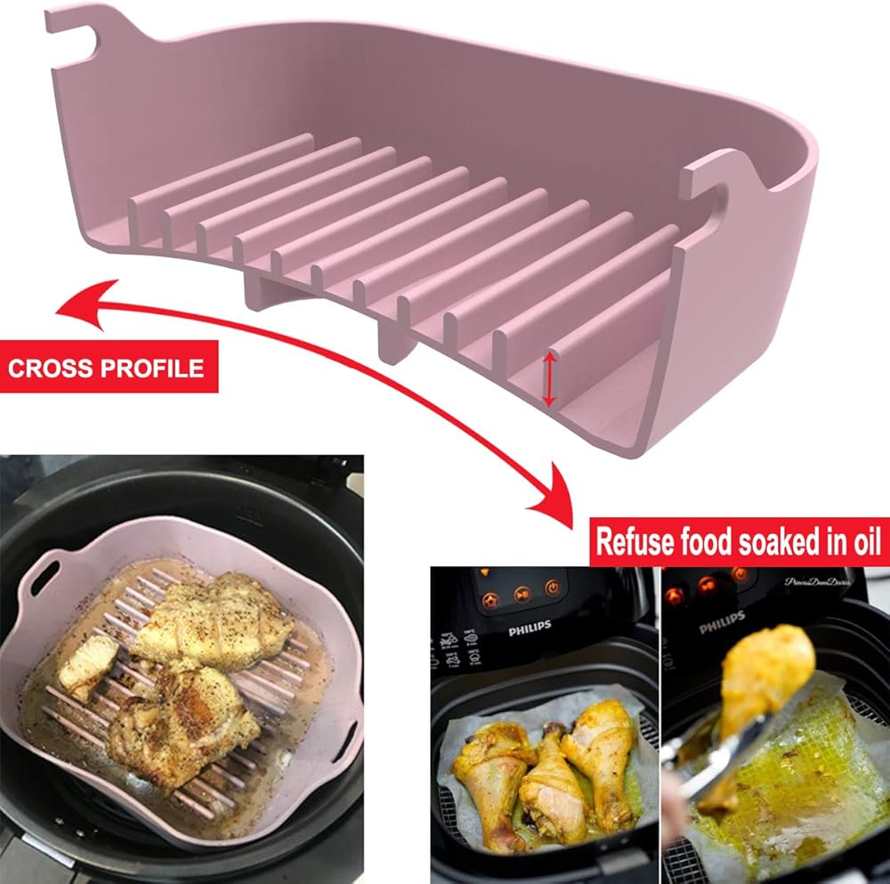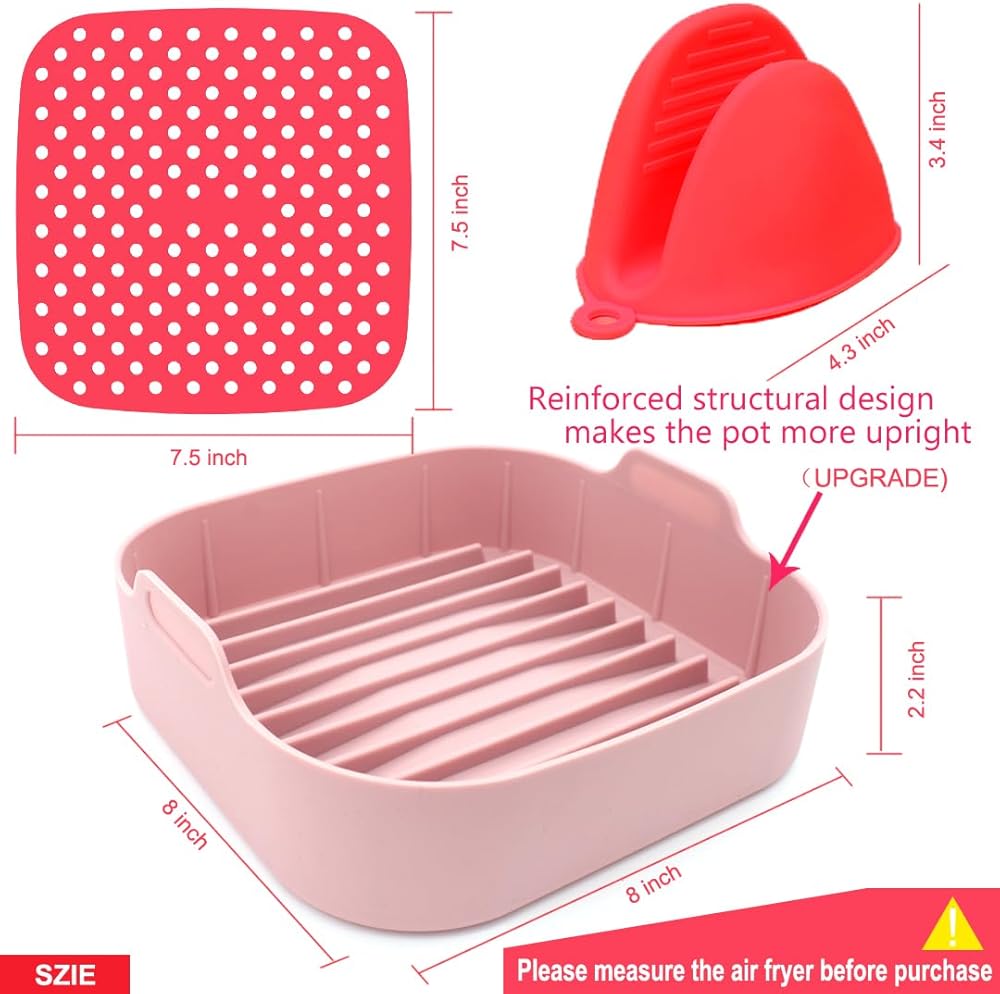 3* Air Fryer Silicone Liner Pots :8*8*2.2 inch, red,pink & grey