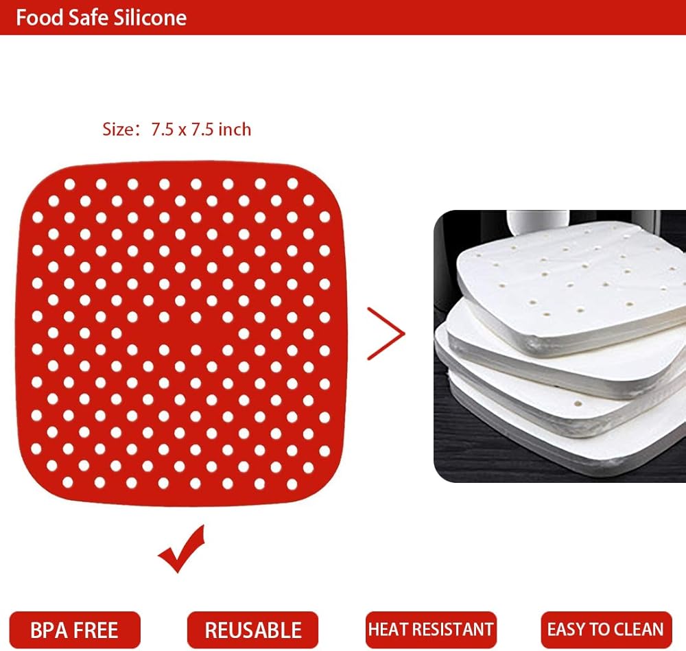 1* Air Fryer Silicone Liner Pad, 7.5*7.5 inch, red