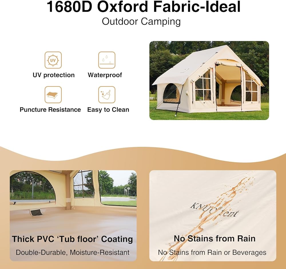 أكسفورد 1680D متين للحماية القصوى ضد الماء: تم تصميم خيمة الهواء KNUO للتخييم في الهواء الطلق، مما يوفر مقاومة فائقة للماء وحماية من الأشعة فوق البنفسجية لتبقيك جافًا ومرتاحًا أثناء مغامراتك الخارجية