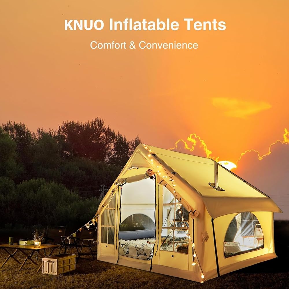 متانة معززة مع قاعدة مطلية بالبولي فينيل كلوريد: لقد أضافت خيمة KNUO القابلة للنفخ للتخييم القوة والمتانة للجزء السفلي، مما يوفر حماية إضافية ضد التآكل للاستخدام طويل الأمد.