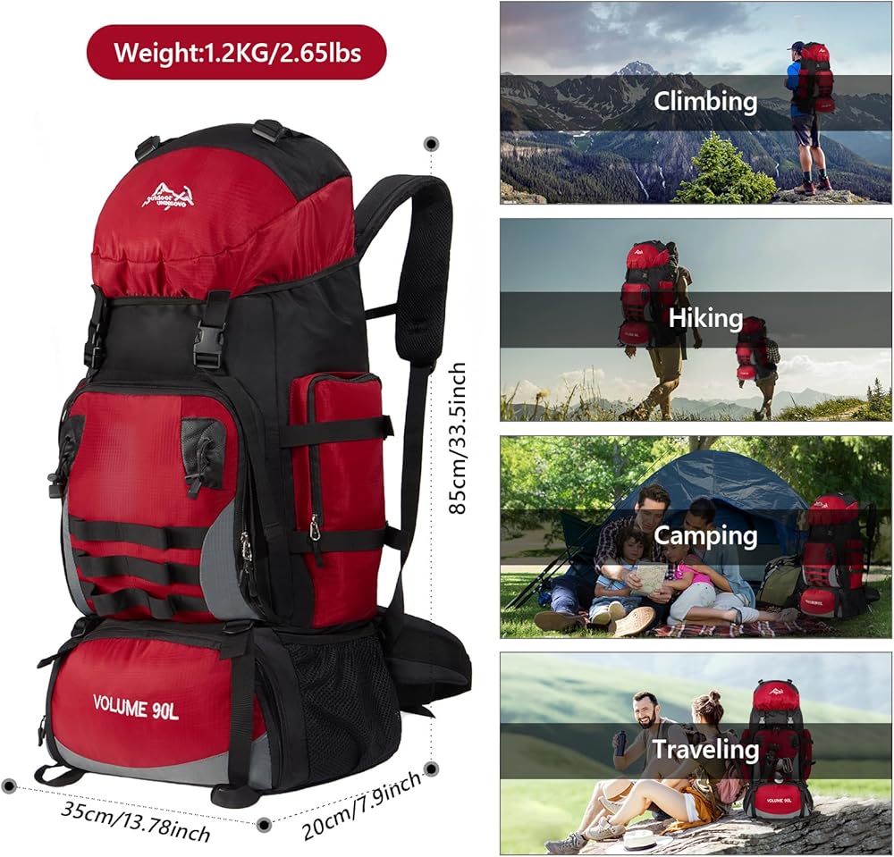 【حقيبة ظهر ذات سعة كبيرة】: حقيبة الظهر للمشي لمسافات طويلة ذات سعة كبيرة 90 لترًا تزن 2.65 كجم فقط لسهولة الحمل، ولا تضيف أي عبء على سفرك. الحد الأقصى لمحمل التحميل هو 45 رطلاً. تتكشف الحجم: 20*35*85 سنتيمتر/7.9*13.78 * 33.5in(L * W * H). حجم مثالي لحقيبة الظهر للتخييم، وحقيبة الظهر للتنزه سيرًا على الأقدام، وحقيبة الظهر للرحلات، والسفر، والصيد، وصيد الأسماك.