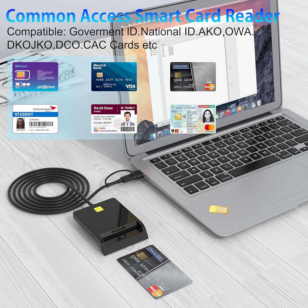 【قارئ بطاقات CAC عسكري】قارئ بطاقات الوصول المشترك العسكري DOD لبطاقات CAC، الهوية الحكومية، الهوية الوطنية، ActivClient، AKO، OWA، DKO، JKO، NKO، BOL، GKO، Marinenet، بوابة AF، Pure Edge Viewer، ApproveIt، DCO وDTS وLPS وDisa Enterprise Email وبطاقات CAC الأخرى.