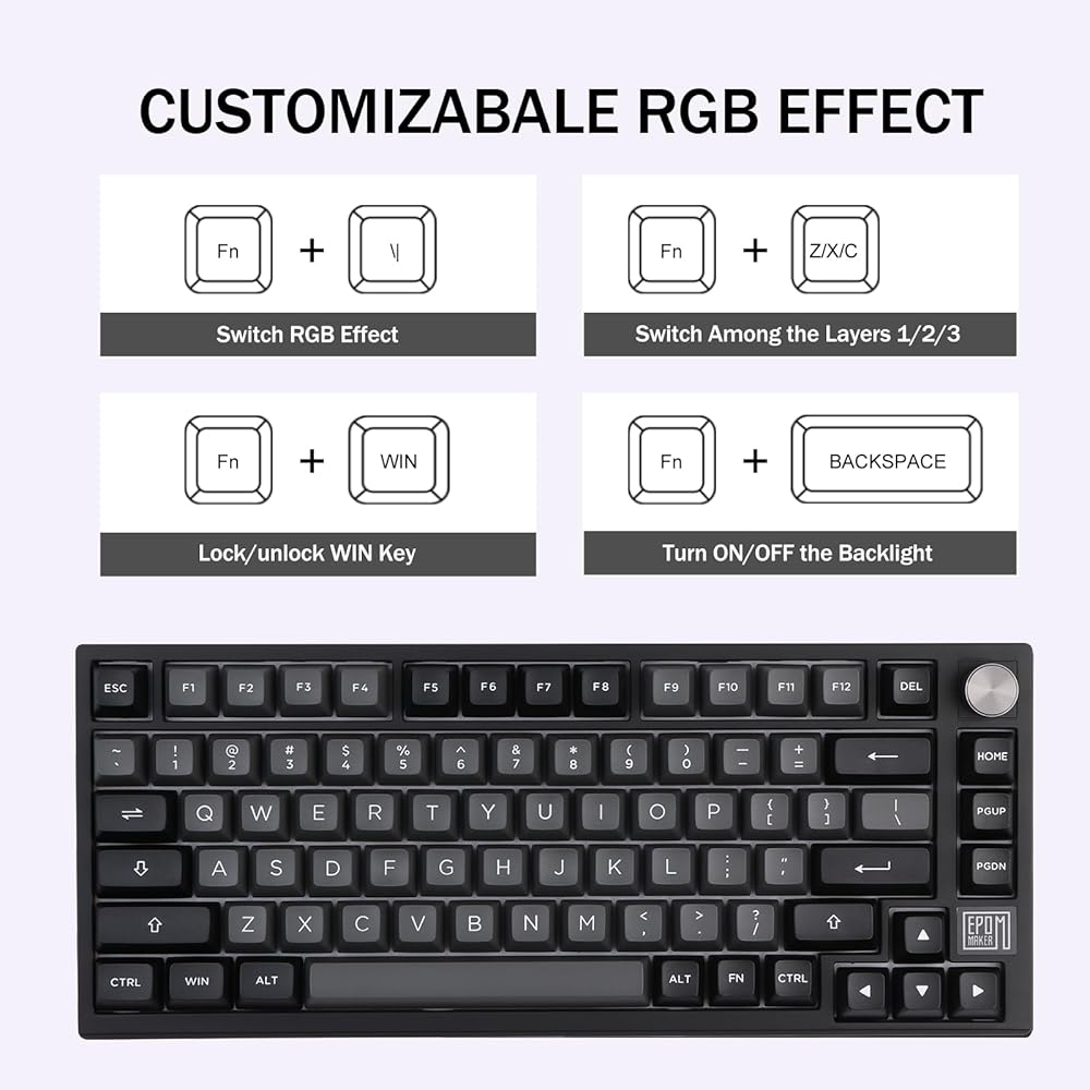 • 【برنامج تمت ترقيته بالكامل لمزيد من الإمكانيات】تتميز لوحة المفاتيح الميكانيكية EPOMAKER TH80 SE ببرنامج EPOMAKER ورقاقة مطورة يمكنها التحقق تلقائيًا من وضع Win/Mac، والتحقق من حالة البطارية (FN+B)، ووضع لوحة المفاتيح وطبقات Fn القابلة للبرمجة (FN+Spacebar). وأكثر من ذلك، هناك مجموعة متنوعة من تأثيرات RGB الافتراضية التي يمكنك التبديل بينها بسهولة باستخدام اختصارات بسيطة.