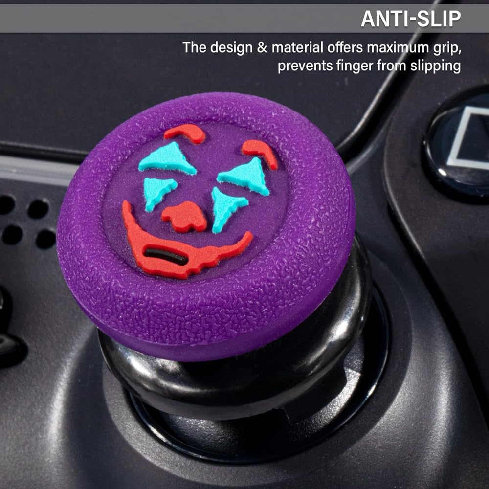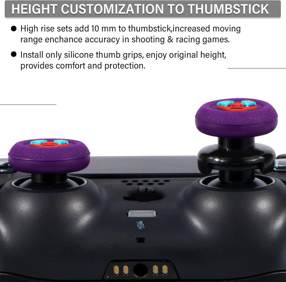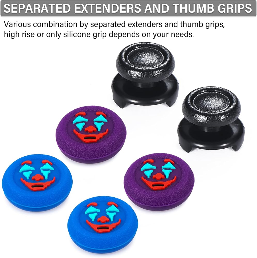FPS Thumbstick Extender & Texture Silicone Grip Cover 4 Sets for PS5 & PS4 Controller (Joker Blue+Purple)