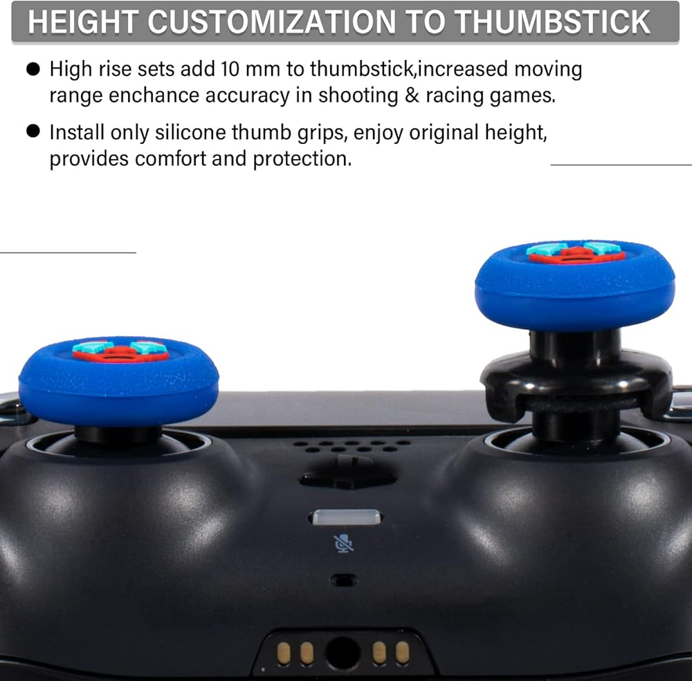 • Different Height Options - Install extender & grips sets adds 10 mm height to the stick, enhances precision in shooting, racing games. Install only silicone thumb grips, enjoy original height and ideal comfort and protection;