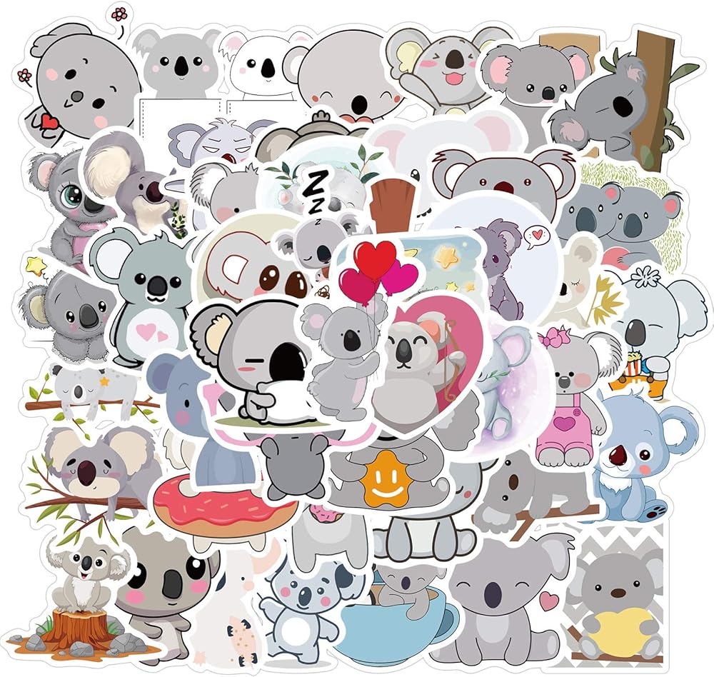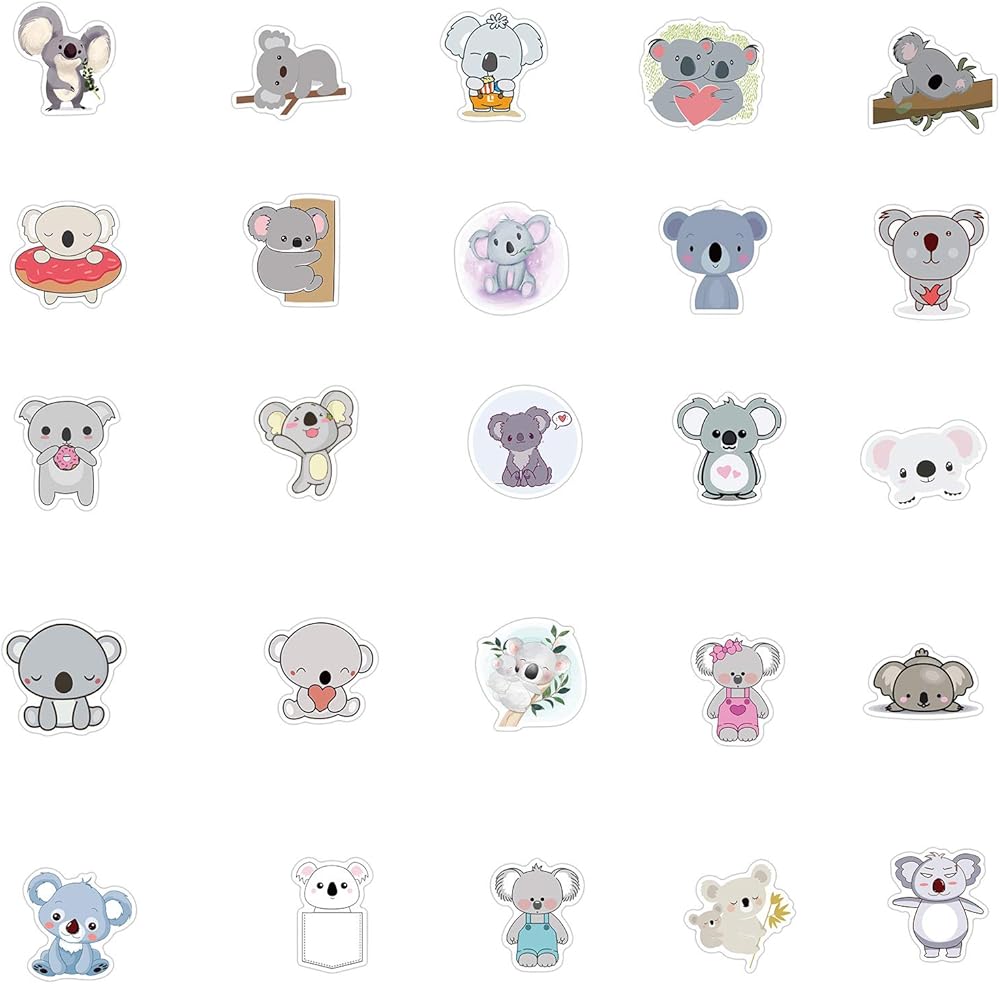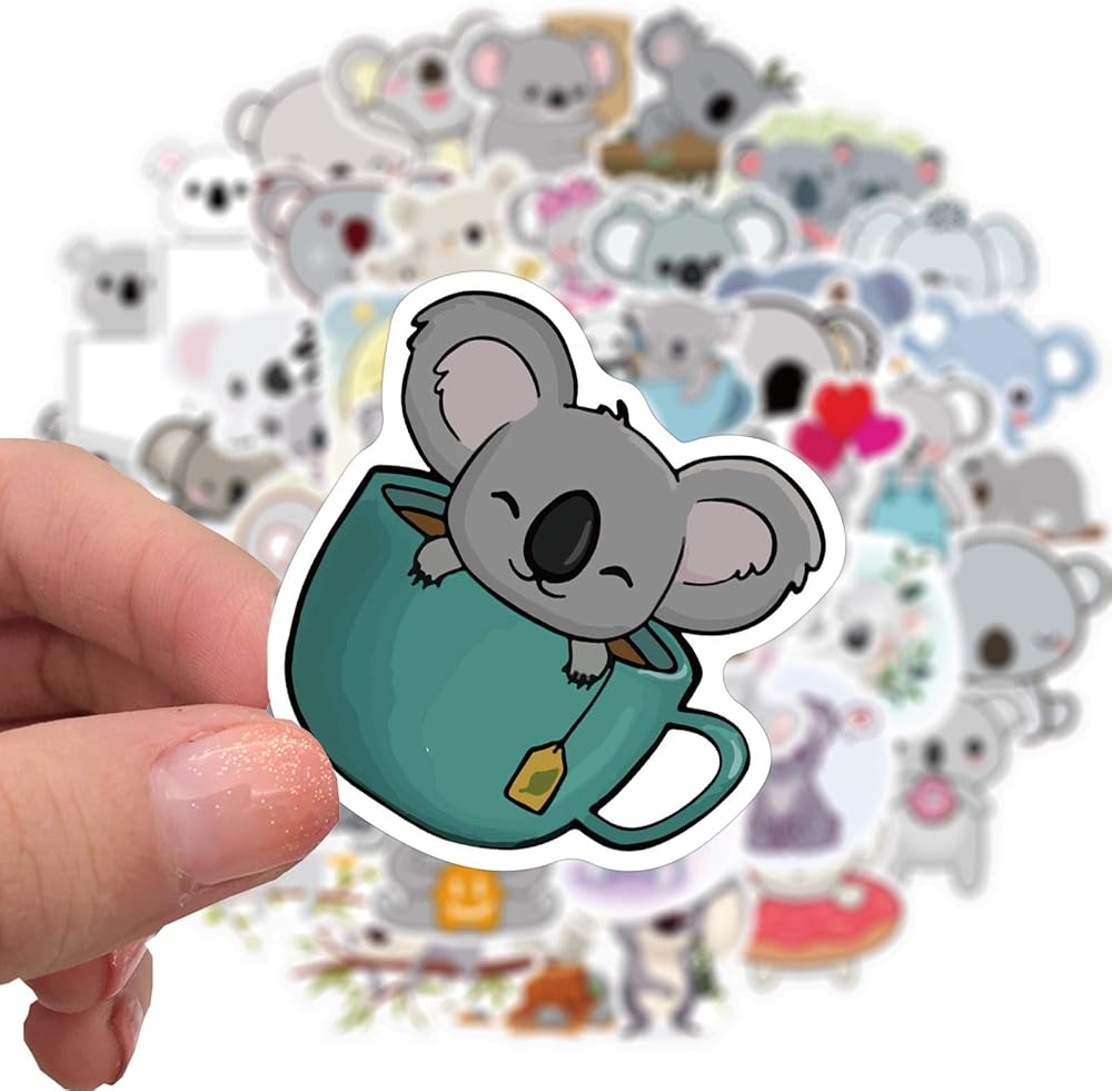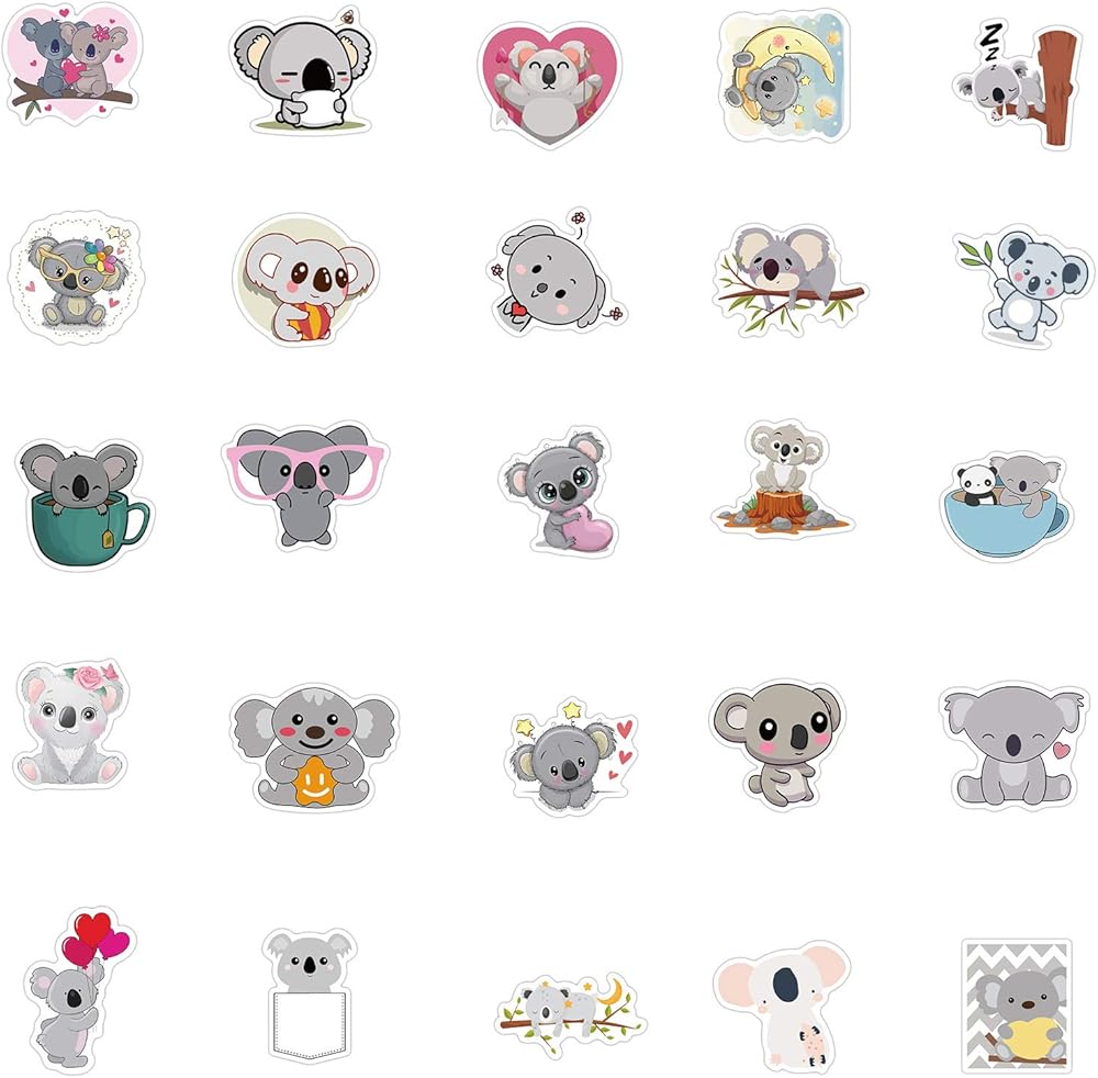 ملصقات زجاجة مياه لطيفة على شكل دب الكوالا 50 قطعة من ملصقات الأطفال والبنات الجميلة لأجهزة الكمبيوتر المحمول وزجاجة المياه والأمتعة على الجليد والدراجات وملصقات لوح التزلج للأطفال والمراهقين ملصقات مقاومة للماء (دب الكوالا)