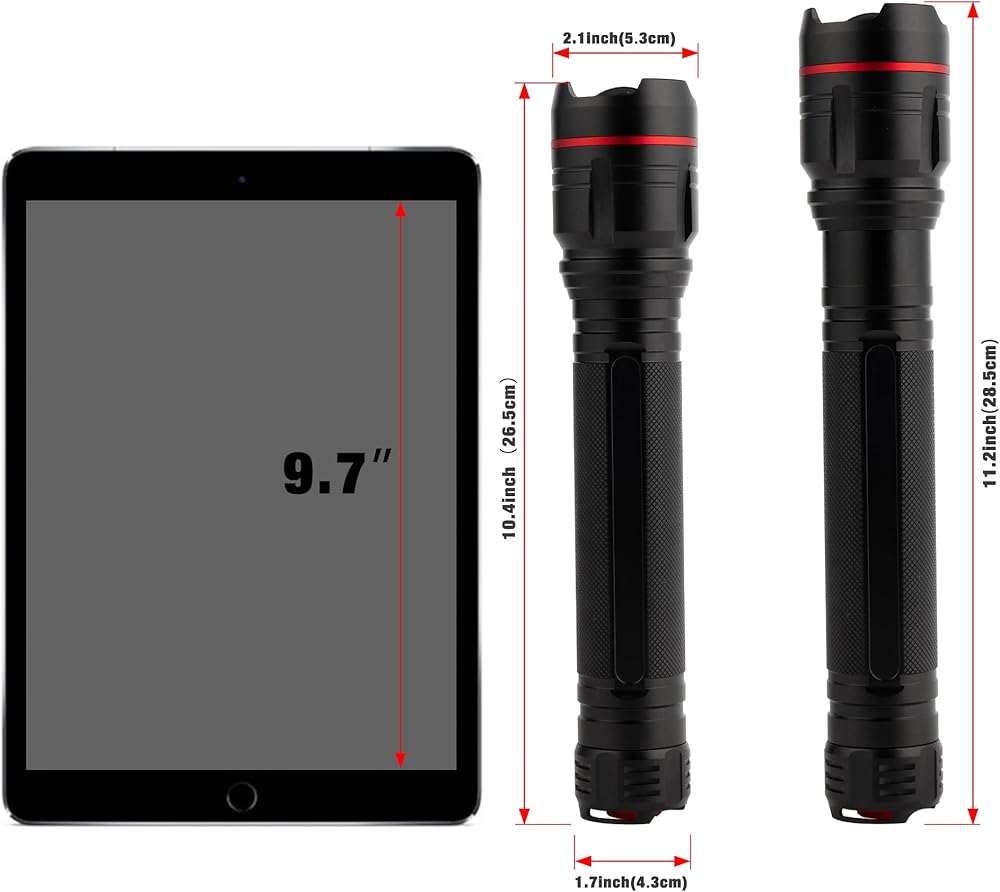 • KunHe 2 Pack 3-Cell D Flashlight, Heavy Duty Large Flashlight with 1000 High Lumens, Zoomable Aluminum Alloy Torch, Perfect for Home Emergency, Camping and Outdoor Adventures