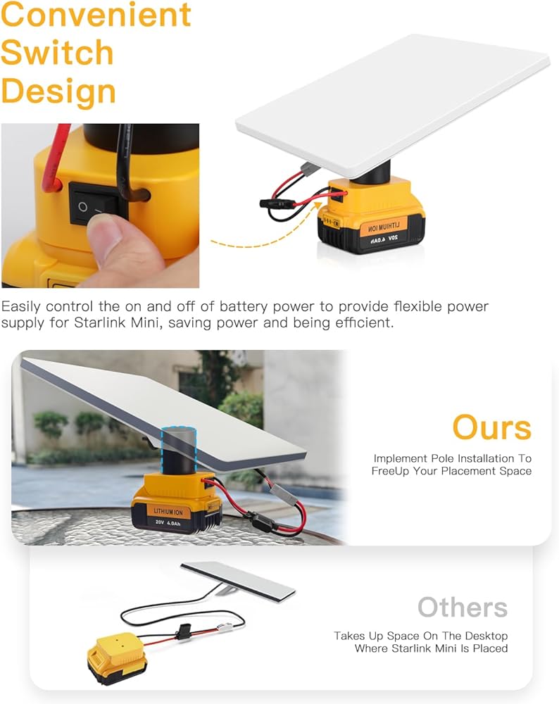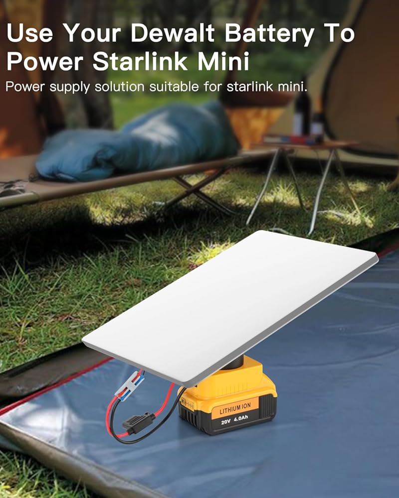 Perfect Compatibility: Designed specifically for Starlink Mini, perfectly compatible with Dewalt 20V /18V DCB series batteries (including models: DCB205 / DCB206 / DCB204 / DCB203 / DCB200 / DCB201, etc), ensuring seamless connection and providing you with power support at any time.