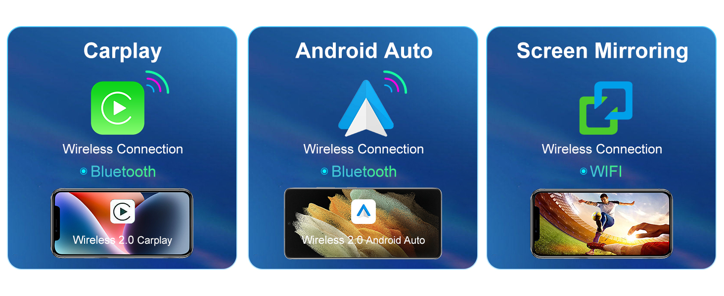 【CarPlay لاسلكي/سلكي وAndroid تلقائي】Carplay لاسلكي وAndroid Auto متصل بالبلوتوث، انقر فوق رمز ZLink لبدء وظيفة CarPlay أو Android Auto أو العودة إلى الصفحة الرئيسية، طريقة توصيل سلكية باستخدام كابل USB ذو 6 دبابيس، مريح جدًا في التشغيل، مجاني يديك، تبقيك مركزًا وتستمتع بالترفيه أثناء القيادة