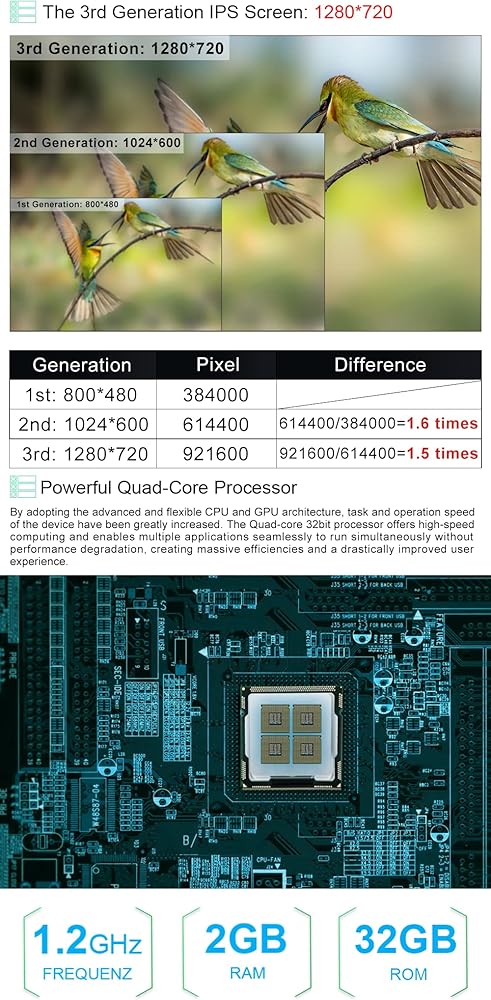 ترقية راديو السيارة Android: نظام Android للتخصيص، مع وحدة معالجة مركزية رباعية النواة بسرعة 1.2 جيجا هرتز، وذاكرة وصول عشوائي سعتها 2 جيجا بايت، تضمن التشغيل السلس والاستجابة الأسرع، وذاكرة قراءة فقط 32 جيجا بايت لمزيد من التطبيقات المثبتة، وشاشة لمس عالية الدقة 1280*800 IPS من الجيل الثالث، وألوان أكثر ثراءً وعرضًا أكثر وضوحًا، دقة عرض الشاشة 1280 × 800، دقة إخراج الفيديو 1024 × 600 (للشاشة الخارجية)