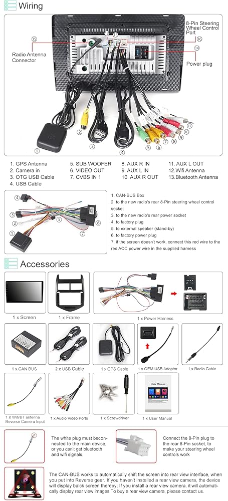 【التحكم في عجلة القيادة وكابلات USB مزدوجة】يتوفر سرج سلكي للتوصيل والتشغيل، سهل التركيب (تتطلب بعض كابلات swc للسيارات أسلاكًا يدوية، اتصل بنا إذا لم يعمل swc)، يدعم برنامج زر التحكم الأصلي في عجلة القيادة للسيارة وتخصيصه (انقر فوق " "الإعدادات" في القائمة الرئيسية، انتقل إلى المصنع وأدخل كلمة المرور 3368، وانقر فوق "طراز السيارة"، وحدد "RZC->GM/Chevrolet->Aveo->2011-2014")، كابلات USB مزدوجة تدعم الشحن لجهازين