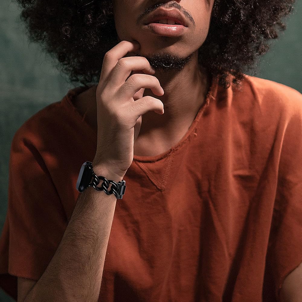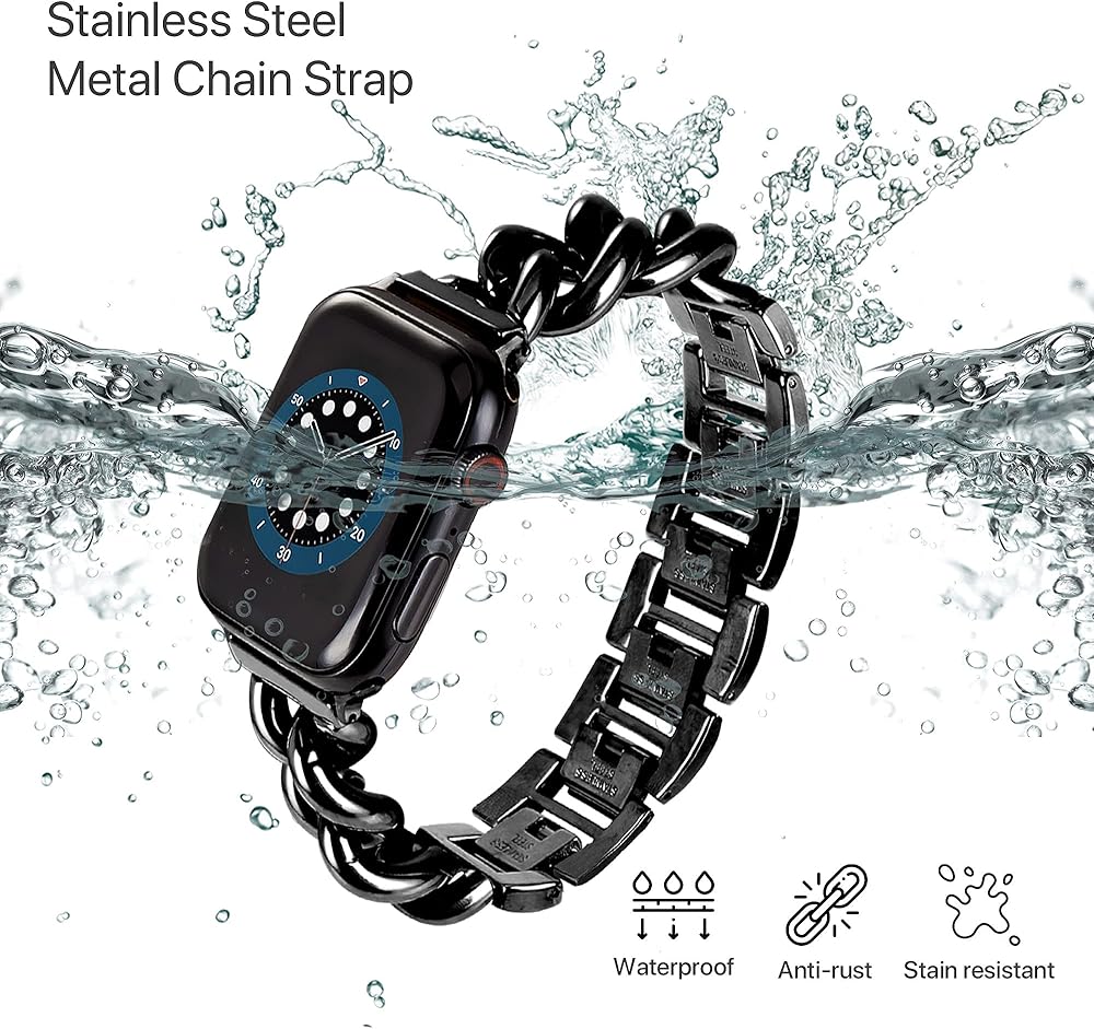 • ✅ تصميم سلسلة مكتنزة جدًا - سوار الساعة يزن 118 مل ويبدو مثل المجوهرات العالية السميكة والرقيقة على المعصم، لأي امرأة أو رجل يحب النمط الأنيق، سوف تحصل على الكثير من الإطراء عند ارتدائه على معصمك، إنه كما أنه خيار هدية رائع للعائلة والأصدقاء وزملاء العمل وما إلى ذلك.