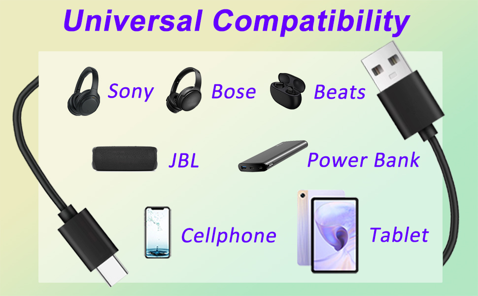 • توافق واسع: متوافق مع Sony WH1000XM4/WH1000XM5/WH-CH720N، Bose QC45/700/Wireless/Ultra Wireless، Beats Flex/Studio Buds/Studio Pro، JBL Charge 4/Charge 5/Flip 5/Flip 6/Pulse 4 ، جوجل، سماعة رأس لاسلكية، سماعة رأس بلوتوث، الهاتف المحمول، وسماعة الأذن، وبنك الطاقة، والصوت، والكمبيوتر اللوحي والمزيد مع منفذ من النوع C.