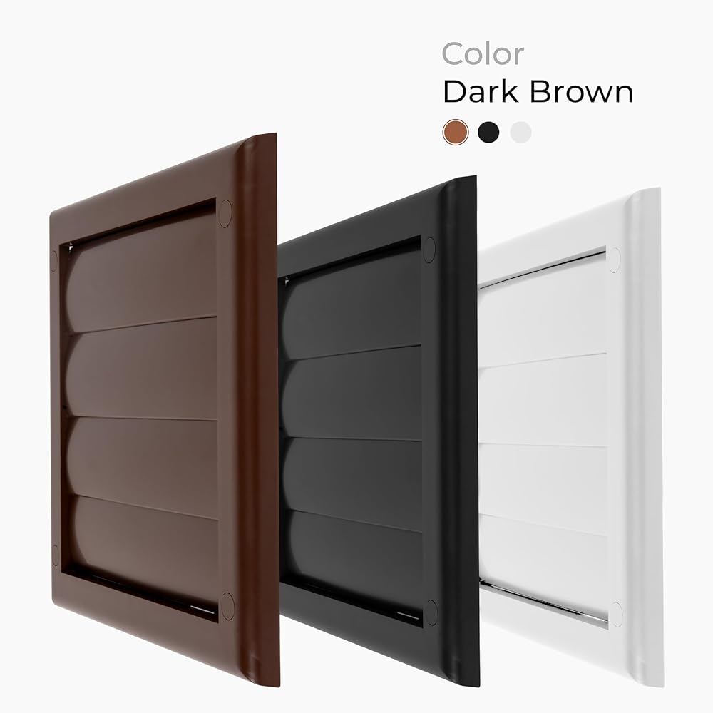 • Crafted from durable ABS plastic with exterior dimensions: 7.48" x 7.48" Inches. Inner grille and shutter coverage is 5.91" x 5.91" Inches. Flange length: 0.59" Inches. Flange outer diameter: ø3.93" Inches. Color: Black