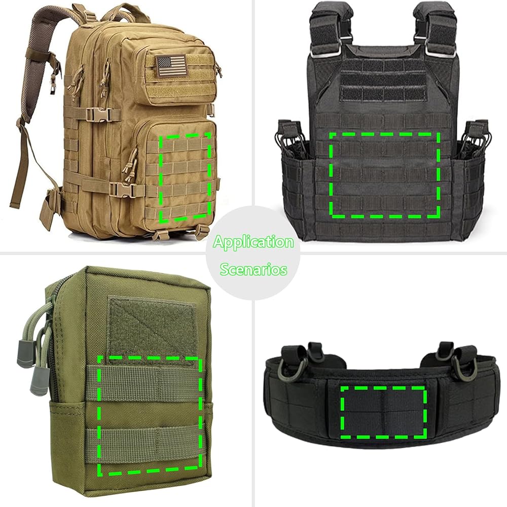 قابلية تطبيق واسعة: يمكن لمحولات MOLLE المصممة بسهولة تأمين مجموعة متنوعة من الملحقات المعيارية للمعدات المتوافقة مع MOLLE، مما يوفر حلولاً مرنة لكل من الاستخدام التكتيكي والمغامرات الخارجية