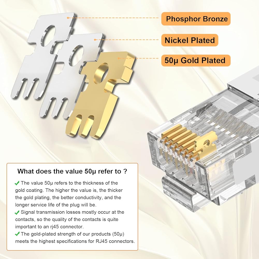 يلبي ناقل الحركة الفائق متطلبات أداء CAT6a وفقًا لمعايير ANSI/TIA-568-B.2-10 لشبكة متوافقة مع قناة Gigabit Ethernet. توفر جهات الاتصال المطلية بالذهب 50 ميكرون على موصلات شبكة 8P8C سرعة أكبر مع تداخل أقل.