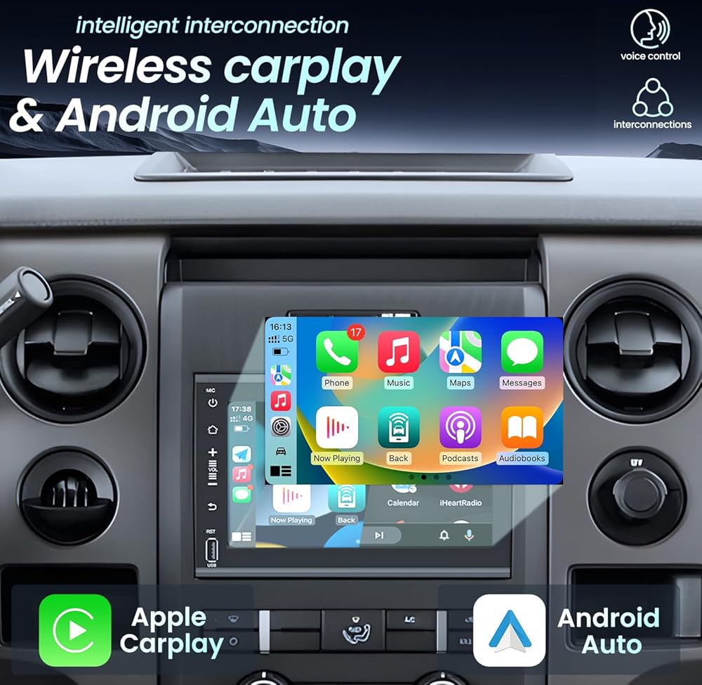 【تشغيل لاسلكي/Android Auto】مع اتصال بلوتوث، يدعم الجهاز التكامل السلس مع CarPlay وAndroid Auto، يمكنك الوصول بسهولة إلى هاتفك لإجراء المكالمات أو التنقل أو تشغيل الموسيقى أو إدارة التطبيقات الأخرى عبر عناصر التحكم Siri/Google، والاستمتاع براحة الاتصال اللاسلكي. اتصال.