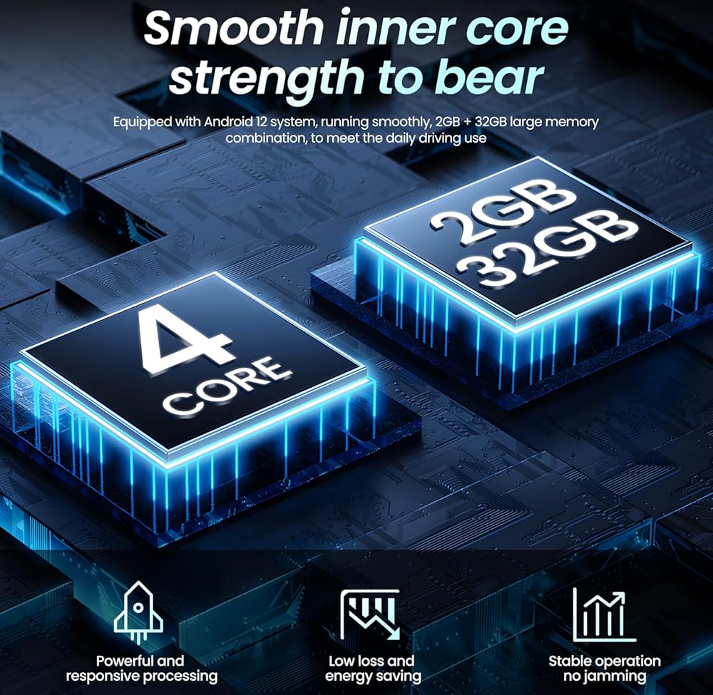 【معالج قوي】يأتي راديو السيارة الخاص بنا مزودًا بنظام Android 12 القوي الذي يعمل بسلاسة وكفاءة. يتميز الجهاز بمعالج رباعي النواة، وذاكرة الوصول العشوائي (RAM) سعة 2 جيجابايت، وسعة تخزين ROM تبلغ 32 جيجابايت. من خلال اتصال WiFi المدمج، يمكنك الوصول بسهولة إلى الإنترنت، ويدعم الجهاز التنقل عبر نظام تحديد المواقع العالمي (GPS) مع تنزيل وتطبيق الخرائط عبر الإنترنت/بدون اتصال، ويوفر راديو السيارة الخاص بنا أداءً محسنًا وخيارات تخزين موسعة لتلبية احتياجاتك الترفيهية.