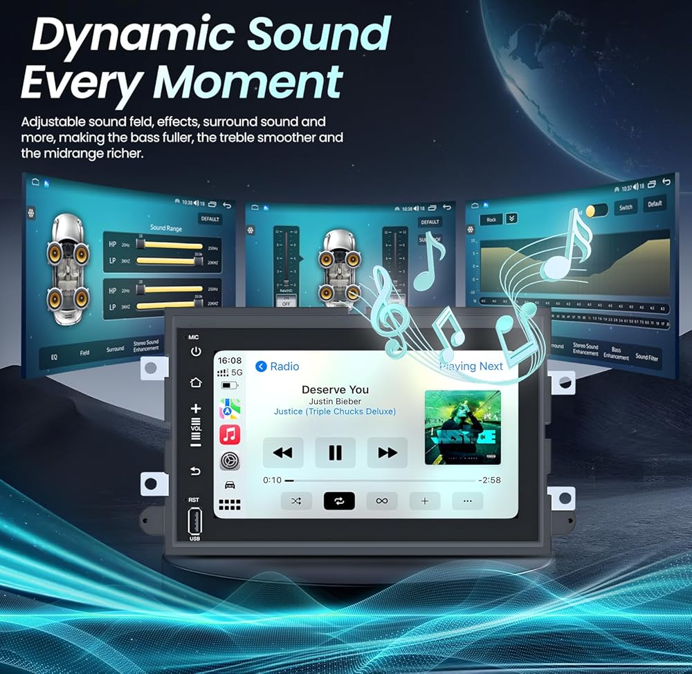 【جودة صوت أفضل】رقاقة معالجة تأثير الصوت DSP مدمجة، تدعم 6 إعدادات صوت سمارت باس، التوازن، الإمبراطور، 16-EQ، الجهارة، الفلتر، تخصيص أفضل صوت في أوضاع مختلفة وفقًا لتفضيلاتك لتلبية احتياجاتك الشخصية، وتجلب لك رحلة قيادة ممتعة.