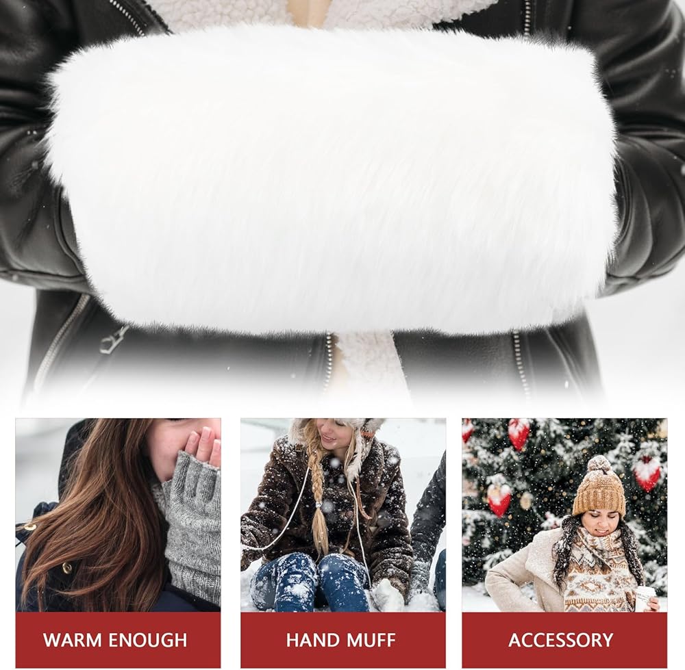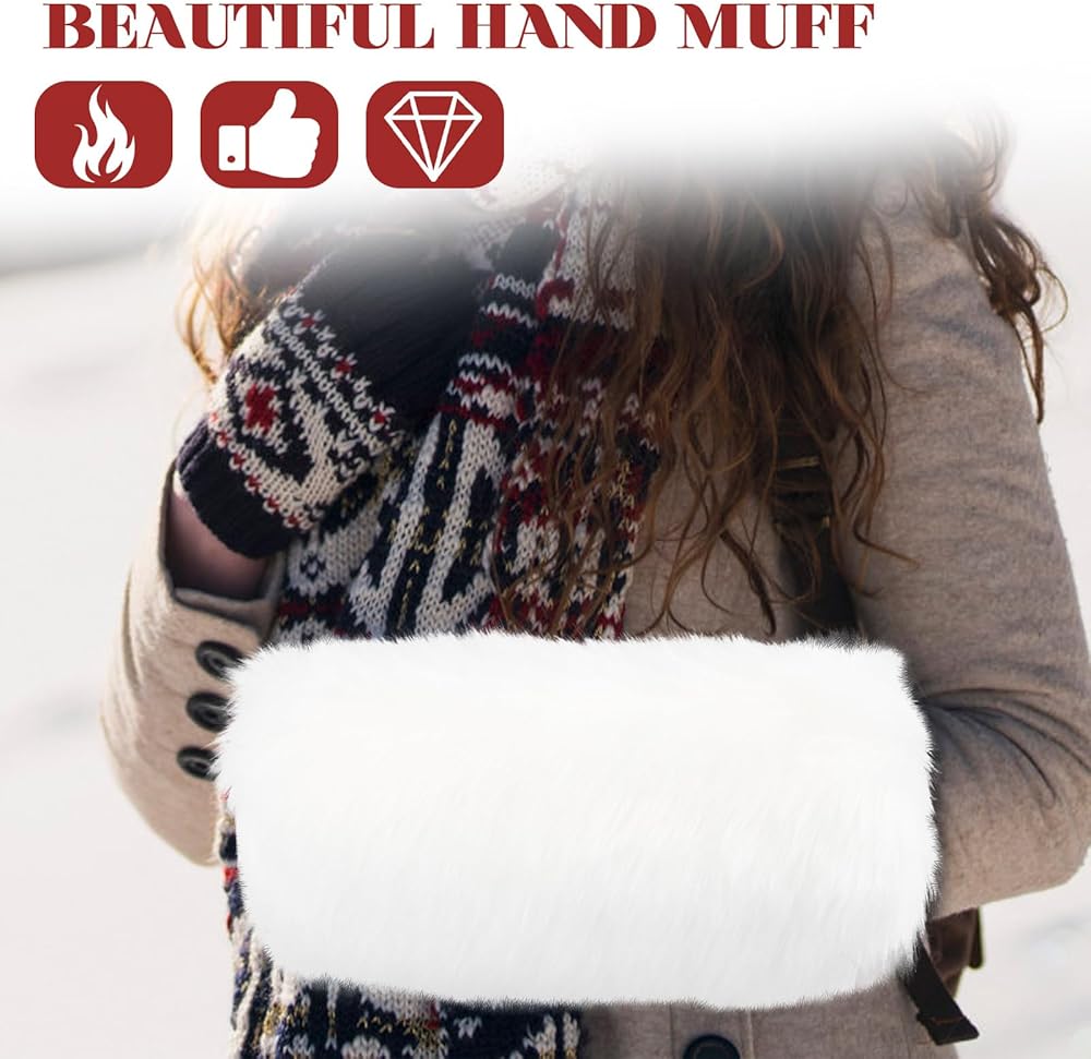 خامة عالية الجودة: كمامة تدفئة اليد مصنوعة من فرو صناعي ناعم، ناعم وسلس، مريح الملمس، فعال للحفاظ على دفء يديك في الطقس البارد