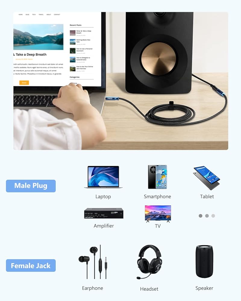 قم بتمديد فرحتك: كابل تمديد سماعة الرأس MillSO 3.5 مم 4 أقطاب يسمح لك بنقل الصوت من الاتصالات لمسافات طويلة. يتوافق امتداد TRRS مع معظم الأجهزة ذات مقبس aux 3.5 مم، مثل الهواتف الذكية وأجهزة الكمبيوتر الشخصية والأجهزة اللوحية وأجهزة الكمبيوتر المحمولة وراديو السيارة وMP3 وما إلى ذلك.