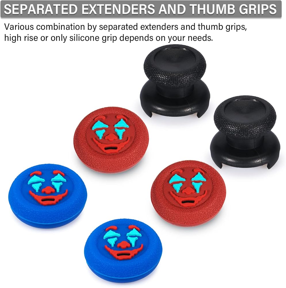 FPS Thumbstick Extender & Texture Silicone Grip Cover 4 Sets for Xbox Series X/S & Xbox One Controller (Joker Red + Blue)