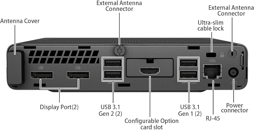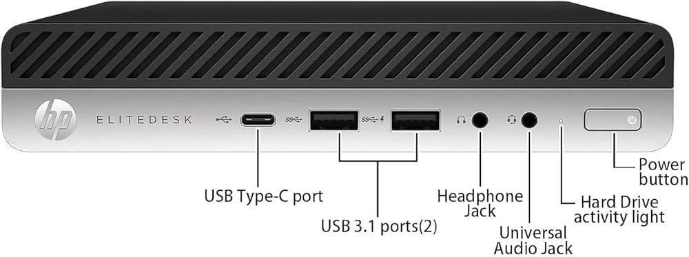• Rich interfaces and advanced accessories:The reconditioned The HP EliteDesk 800 G5 Mini Desktop PC has rich ports to meet the needs of any workplace scenario. Interfaces include 2 x USB 3.1 Gen 1 (rear) ; 1 x USB 3.1 Gen 1 (front) | 2 x USB 3.1 Gen 2 (rear) ; 1 x USB 3.1 Gen 2 (front) | 1 x USB Type-C 3.1 Gen 2 (15 W) port (front) | 1 x DisplayPort | 1 x RJ-45 | Headphone output interface,Microphone input interface.