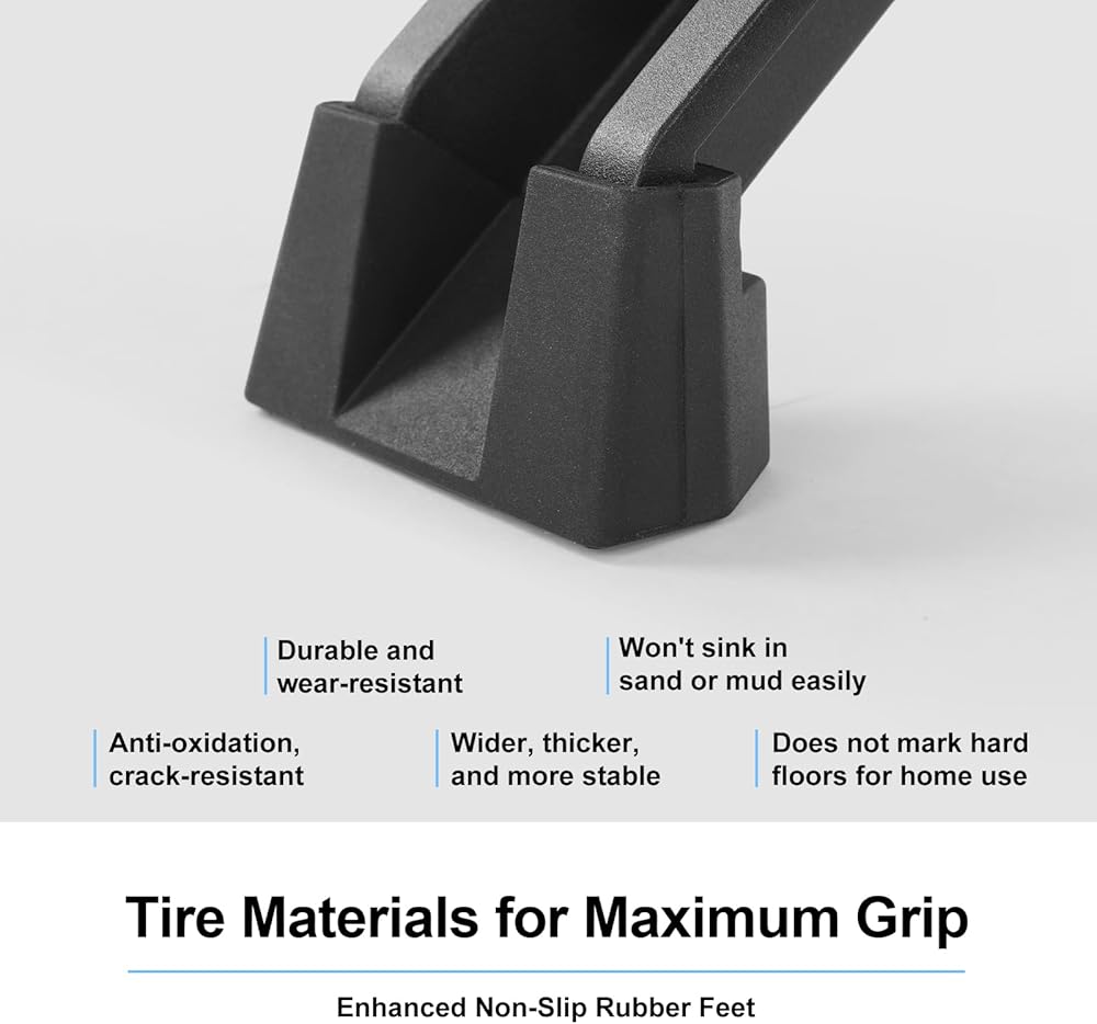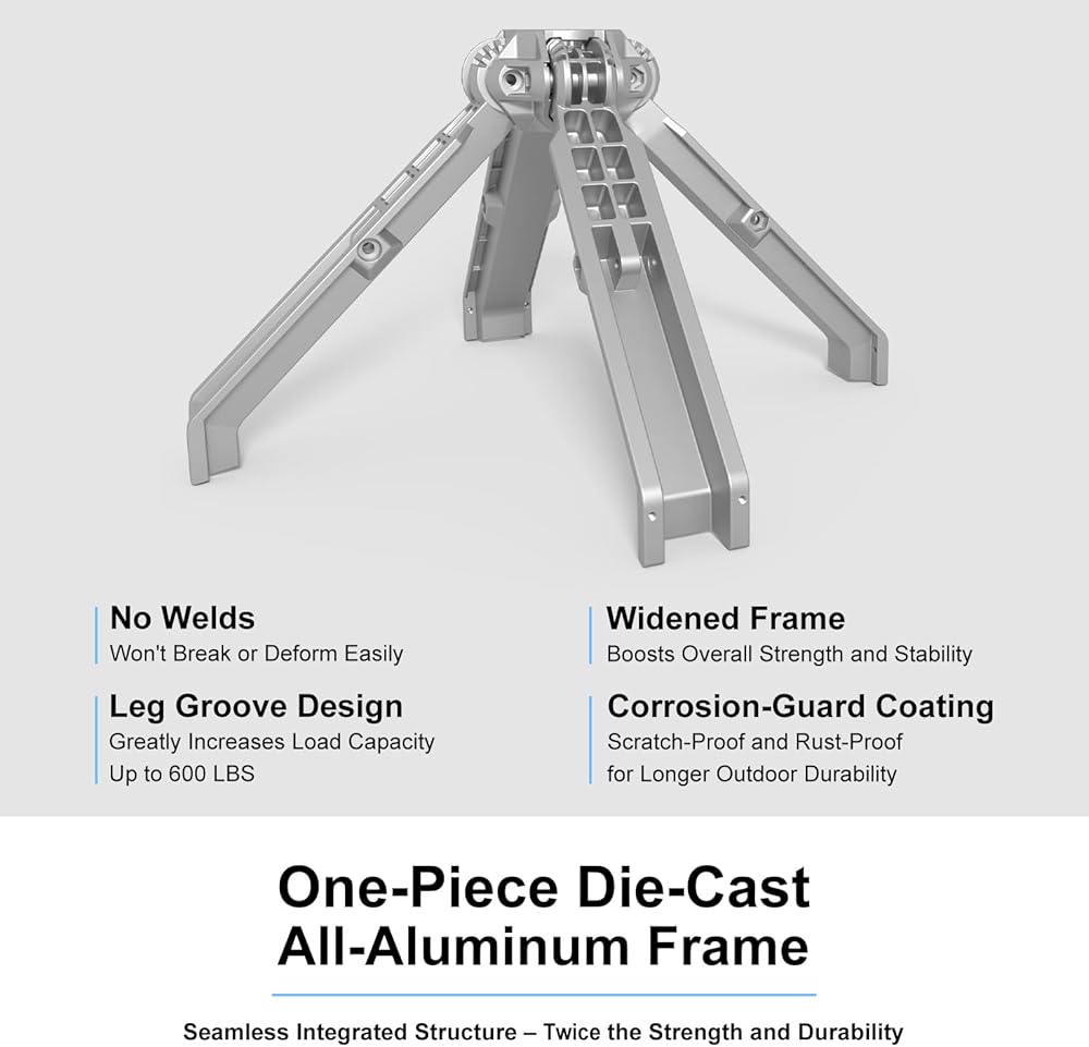 متين ويدوم طويلاً: الإطار مصنوع من سبائك الألومنيوم المقاومة للتآكل. وسادة المقعد مصنوعة من نسيج نايلون مقاوم للماء ومقاوم للأشعة فوق البنفسجية 210D مقاوم للتمزق. وسادات القدم مصنوعة من مطاط من الدرجة S مضاد للانزلاق ومقاوم للاهتراء.