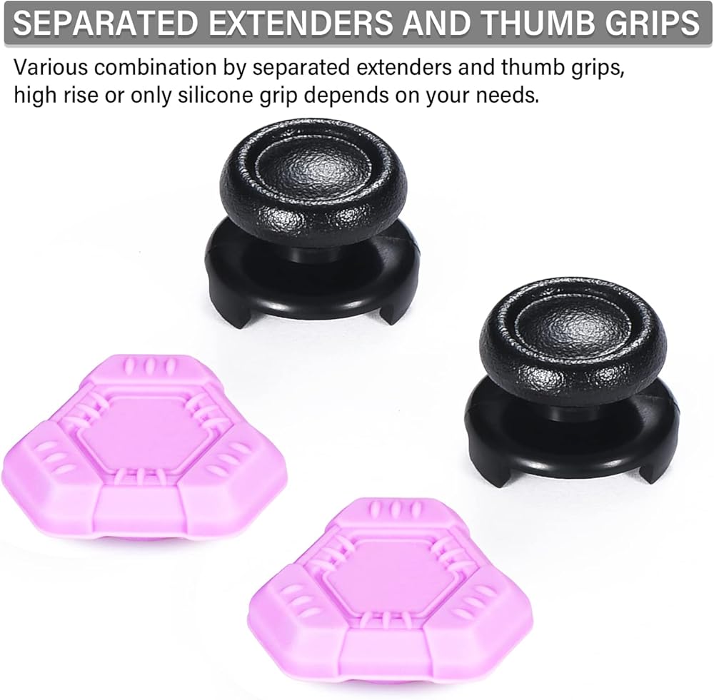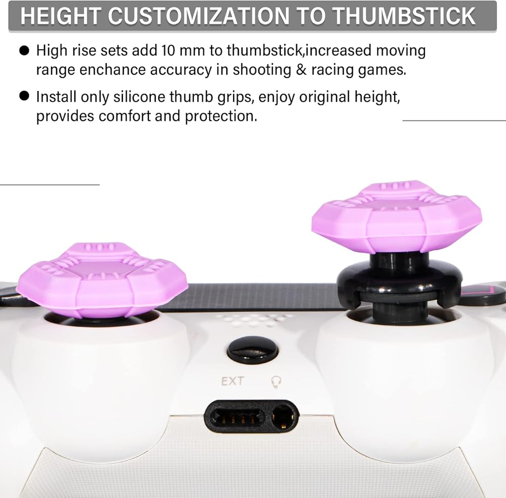 • Different Height Options - Install extender & grips sets adds 10 mm height to the stick, enhances precision in shooting, racing games. Install only silicone thumb grips, enjoy original height and ideal comfort and protection;