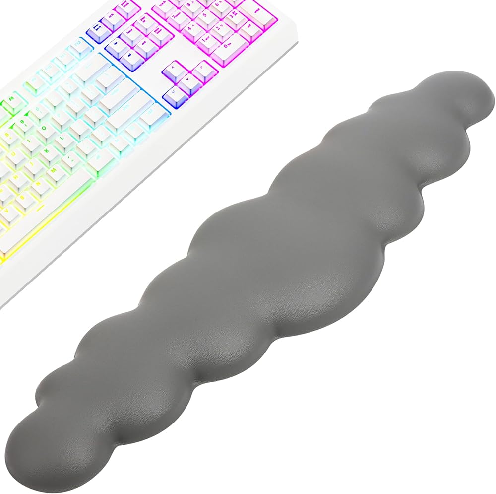 مسند معصم سحابي للوحة المفاتيح للكمبيوتر، وسادة لوحة مفاتيح من جلد البولي يوريثان الناعم، وسادة معصم من إسفنج الذاكرة عالي الكثافة مع قاعدة غير قابلة للانزلاق لكتابة مسند اليد للوحة المفاتيح وتخفيف الآلام للكمبيوتر المحمول والمكتب المنزلي (رمادي)