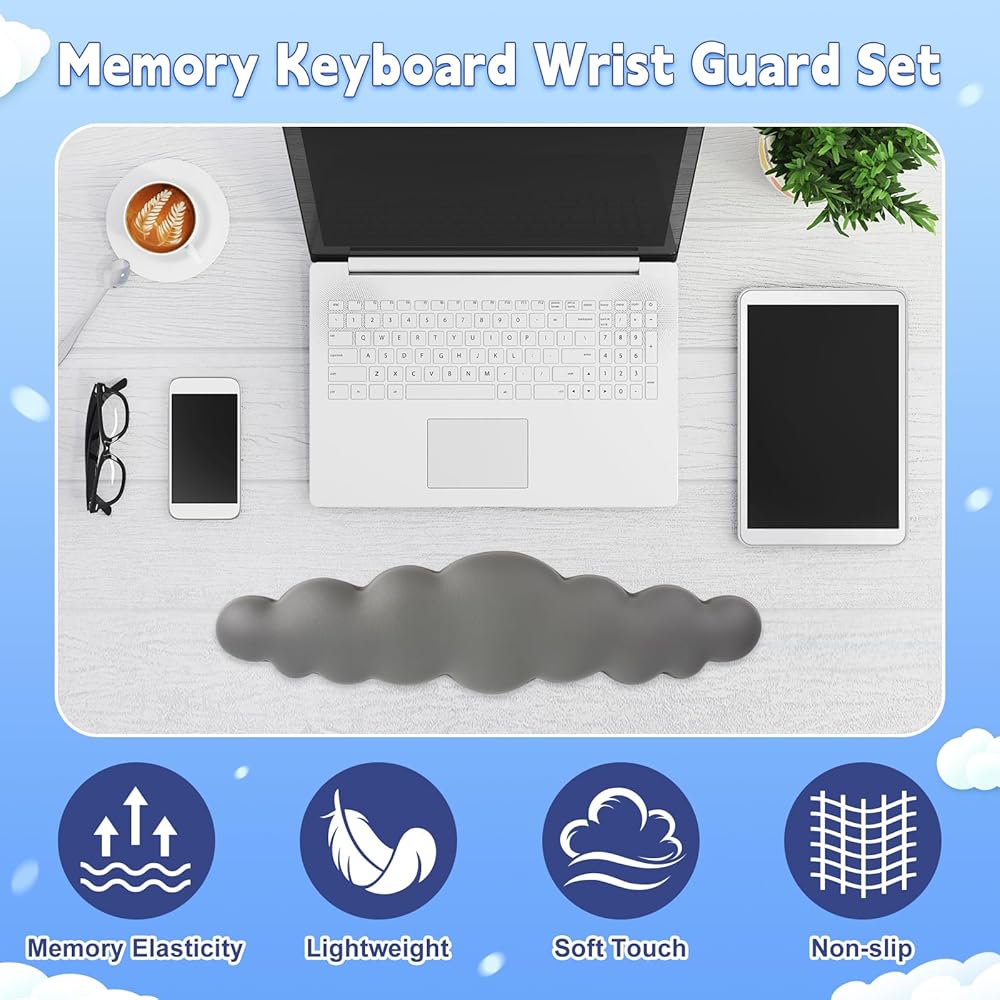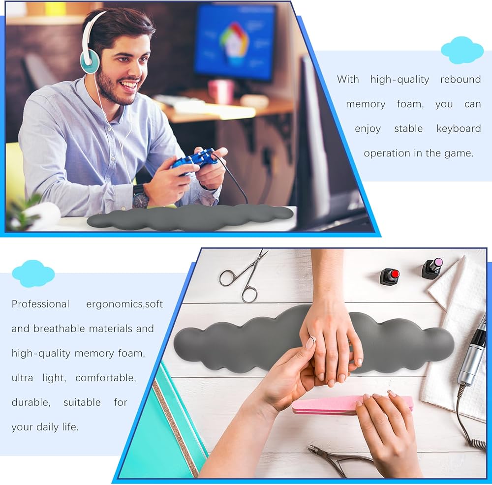 ☁تطبيق واسع: يمكن أن تساعدك لوحة المفاتيح الجديدة هذه على الاسترخاء أثناء الدراسة والعمل ولعب الألعاب. بالنسبة لأولئك الذين يستخدمون أجهزة الكمبيوتر بشكل متكرر، تعد مساند المعصم السحابية اللطيفة هذه من الملحقات الأساسية للمكتب المنزلي. مناسب للعاملين في المكاتب ولاعبي الألعاب والكتاب والطلاب والمحررين والمصممين والمزيد.