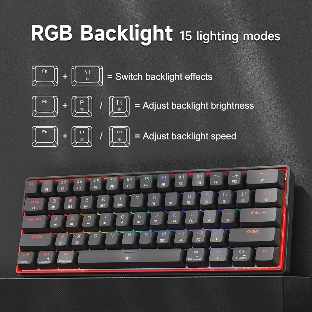 • إضاءة خلفية RGB قابلة للتخصيص: توفر لوحة المفاتيح K61SE مجموعة واسعة من أوضاع إضاءة RGB مع تحكم كامل في الألوان. قم بتخصيص اللون والتأثيرات لكل مفتاح بسهولة، مما يخلق تجربة مرئية فريدة تضيف لمسة مميزة إلى إعدادات الألعاب أو مساحة العمل لديك.
