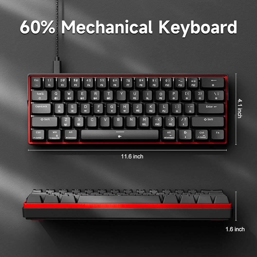 • تخطيط موفر للمساحة بنسبة 60%: تحتفظ لوحة المفاتيح الميكانيكية K61SE بنسبة 60 بالمائة بجميع المفاتيح الأساسية التي تحتاجها للكتابة الفعالة. يأتي مزودًا بأرجل قابلة للإمالة وكابل قابل للفصل لسهولة التخزين، مما يجعله مناسبًا للعمل والسفر والألعاب والمكتب والاستخدام المنزلي.