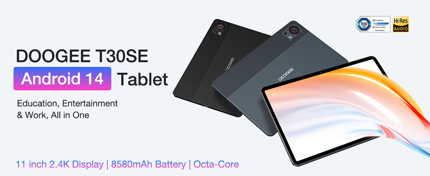 【شاشة 11 بوصة + 8580 مللي أمبير في الساعة + مكبرات صوت ستيريو】يحتوي الكمبيوتر اللوحي T30SE Android 14 على شاشة IPS كاملة الألوان مقاس 11 بوصة 2.4K مع ألوان رائعة ولمسة مريحة. بطارية مدمجة عالية السعة 8580 مللي أمبير، جنبًا إلى جنب مع نظام تشغيل فعال ونظام توفير الطاقة، يمكن للجهاز اللوحي العمل لفترة طويلة. يحتوي الكمبيوتر اللوحي DOOGEE T30SE على 4 مكبرات صوت استريو، والصوت مشرق وواضح، واستمتع بتجربة بصرية وسمعية محيطية ثلاثية الأبعاد.