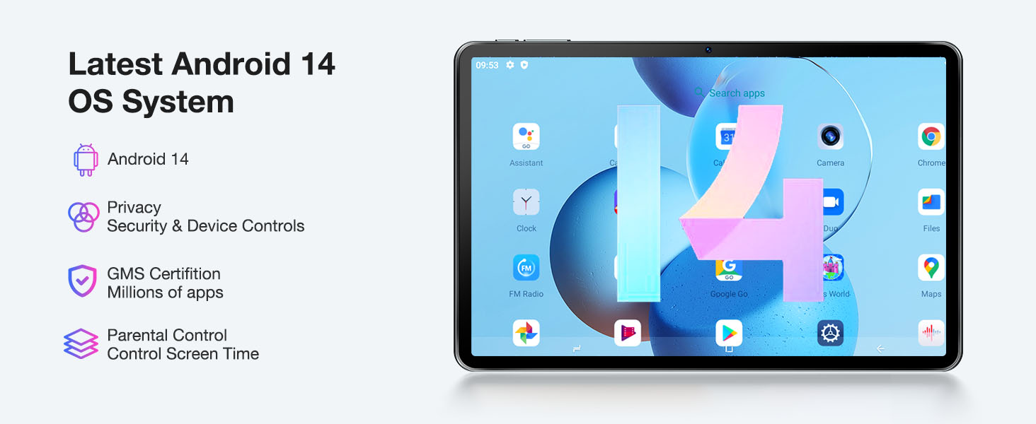 【معالجات Android 14 + ثماني النواة】يتم تشغيل الجهاز اللوحي الجديد مقاس 11 بوصة بنظام التشغيل Android 14 السريع والذكي والآمن مع معالجات قوية مدمجة ثماني النواة لتجربة بث فعالة وسلسة. لا يوجد أي متاعب من Bloatware. استمتع بإعدادات أكثر تخصيصًا باستخدام الأدوات ووظائف تقسيم الشاشة وأدوات الرقابة الأبوية وميزات المستخدمين المتعددين. تشفير البيانات وأذونات المستخدم وإدارة الإشعارات لحماية خصوصيتك بشكل أفضل. يمكنك الوصول إلى ملايين التطبيقات من خلال متجر Play.