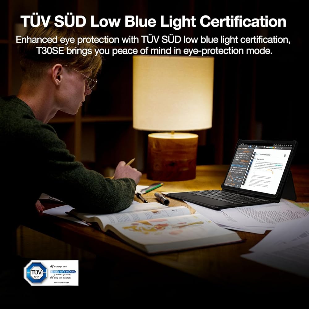 【ميزانية جيدة】حجم الجهاز اللوحي 26*17*0.76 سم، الوزن الصافي 506 جرام. بفضل التصميم المعدني الكامل والحواف المنحنية وعملية التلميع اللطيفة، يوفر الكمبيوتر اللوحي T30SE android 14 ملمسًا ناعمًا ومظهرًا متميزًا. إنها الهدية المثالية لأعياد الميلاد والمهرجانات.