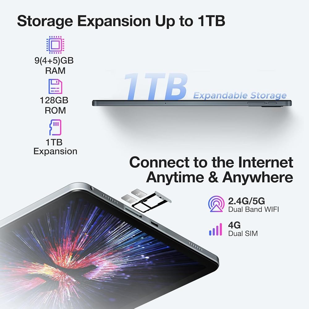 【ذاكرة الوصول العشوائي 9 جيجابايت + ذاكرة الوصول العشوائي 128 جيجابايت + 1 تيرابايت قابلة للتوسيع، يتميز الكمبيوتر اللوحي T30SE بنظام أندرويد بذاكرة وصول عشوائي 9 جيجابايت (توسيع 4 جيجابايت + 5 جيجابايت من ذاكرة الوصول العشوائي) وذاكرة وصول عشوائي 128 جيجابايت. يتم دعم توسيع ذاكرة MicroSD/TF (5 جيجابايت - 1 تيرابايت)، ويمكن تعيين هذه الذاكرة كوحدة تخزين إضافية أو وحدة تخزين محمولة للكمبيوتر اللوحي. يوفر مدير الذاكرة الجديد اقتراحات التنظيف لإخلاء مساحة على الجهاز اللوحي (بما في ذلك تنظيف الملفات غير المرغوب فيها، وحذف التكرارات، وحذف الملفات الكبيرة، وحذف الملفات التي تم تنزيلها)