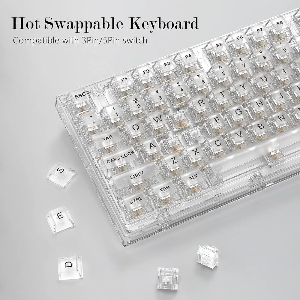 • 【تجربة لوحة مفاتيح ألعاب سلسة】لوحة المفاتيح الميكانيكية G75 متوافقة مع نظامي التشغيل Windows وMac. توفر لك المفاتيح الكاملة المضادة للظلال تجربة لعب أكثر سلاسة. كابل لوحة مفاتيح USB-C قابل للفصل يجعل لوحة مفاتيح الألعاب بنسبة 75% أكثر سهولة في الحمل وتخصيصًا.