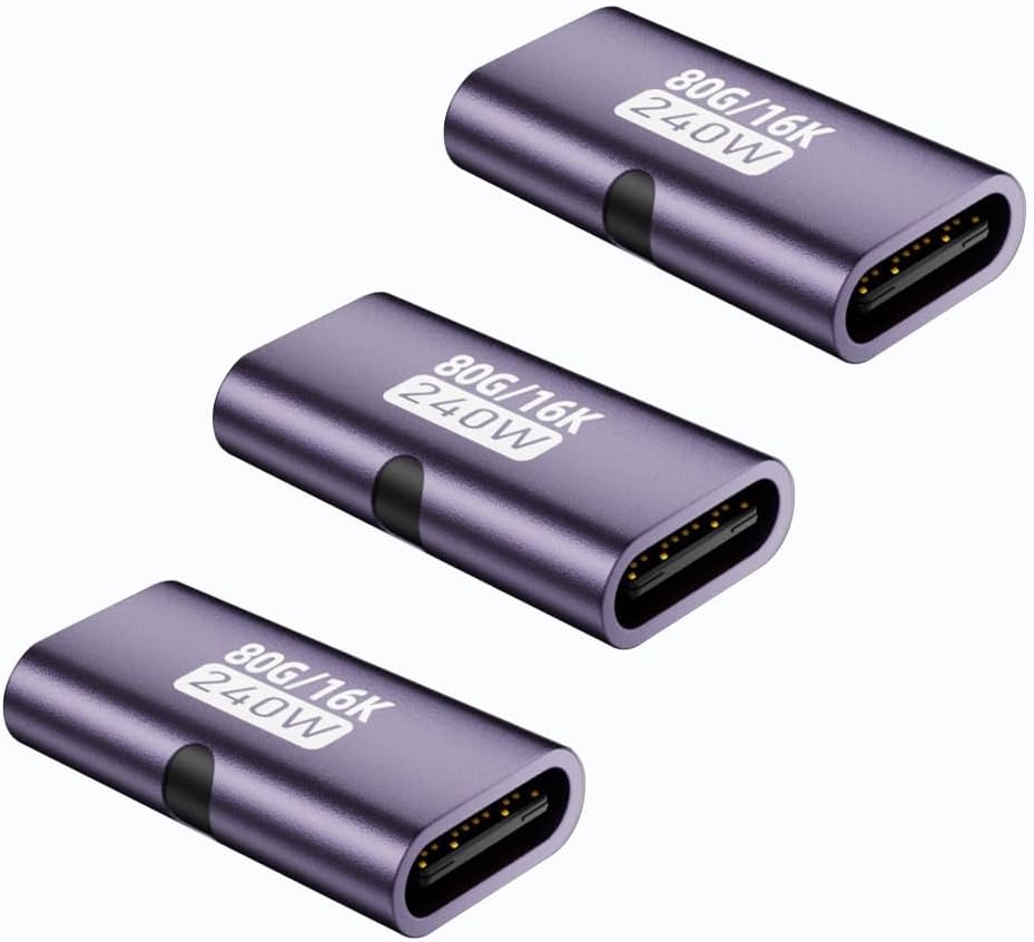 The rgzhihuifz USB C adapter can realize the maximum 48V/5A, 240W USB power delivery, providing your device with the fastest possible charging.The LED indicator light let you know that the connection is good. This is a USB C coupler, which means that only Type-C 3.1 male cables or devices can be connected on both sides. Note: If your cable is USB2.0/3.0 standard, you need to reverse the direction of the cable's plug to work properly.The rgzhihuifz USB C adapter meets the USB 4 standard, that is up to 40Gbps data transmission speed. Transfers movies, music and more in just seconds. The USB C adapter support 4K@60Hz even 8K video output. Please noticed that the data transmission speed also depends on the USB devices and the cable support or not.
