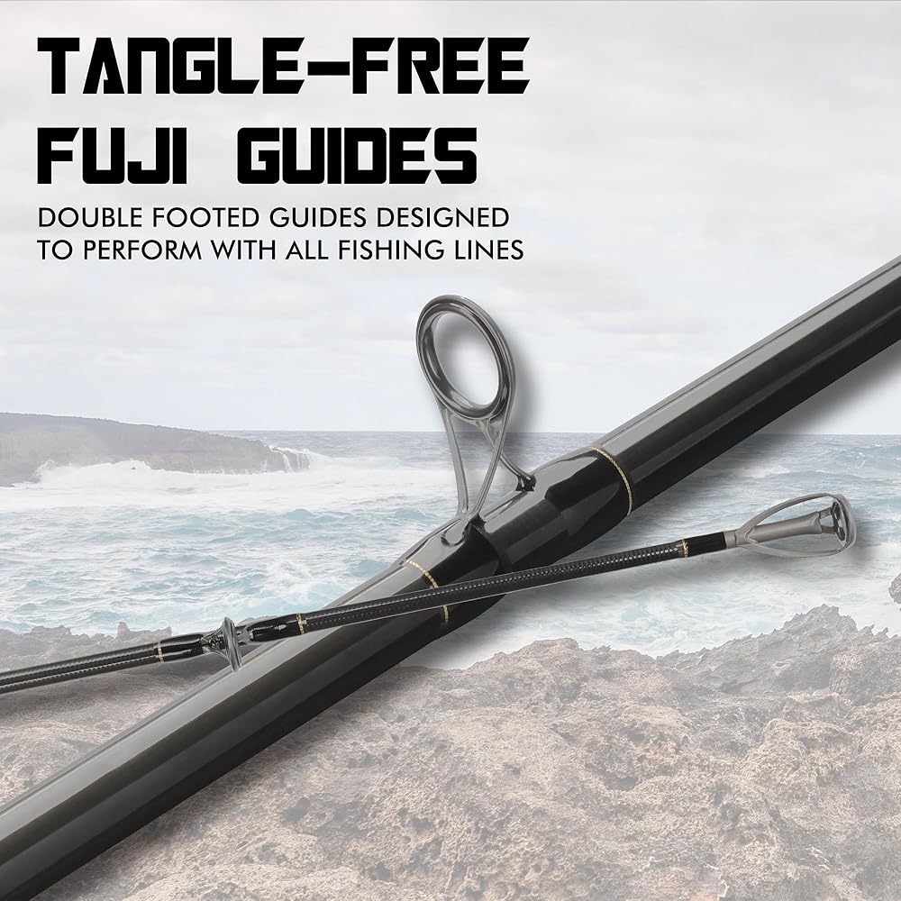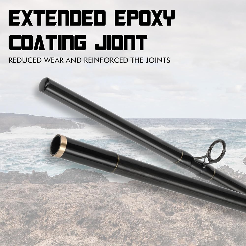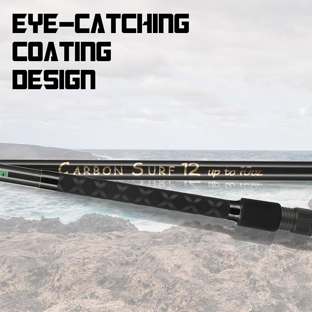 LITTMA carbon surf fishing rod provides strength and performance with a two-piece 50/50 split graphite composite rod blank. Light and balanced surf rod can provide long distance casts time and time again. Strong back bone can handle large stripers and redfish. The guides are spaced according to LITTMA Custom Long Cast Concept Guide Spacing System for optimal line management. And also good action is ideal for throwing plugs, tins, baits and all kind of surf fishing conditions.