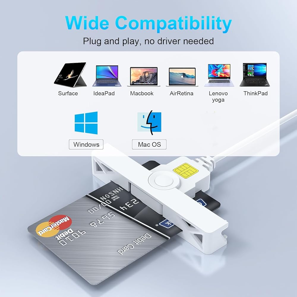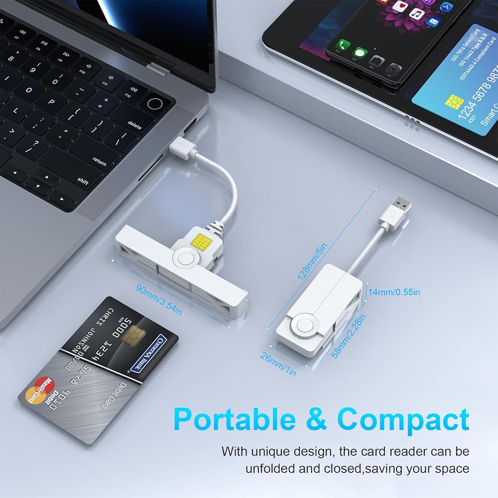 قارئ بطاقة CAC قابل للطي: الميكانيكا الذكية القابلة للطي تعني حجم الإبهام، مريحة للحمل دون القلق بشأن سلك الطاقة أو يمكن ربطها بحلقة المفاتيح. قم بشراء قارئ PIV CAC الخاص بنا، واحصل على ضمان الشركة المصنعة لمدة 18 شهرًا، واستبدال بدون متاعب ودعم فني مجاني مدى الحياة.