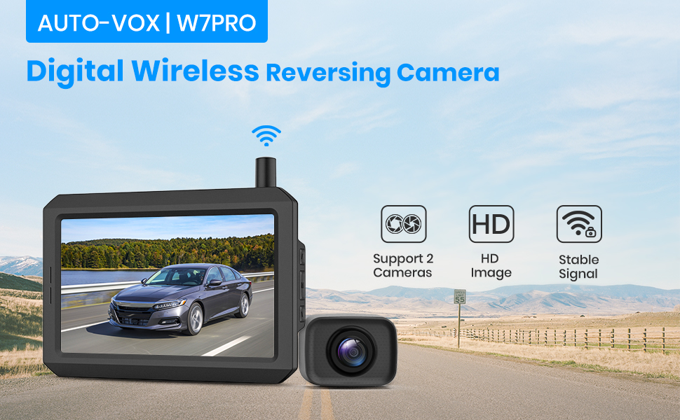 كاميرا احتياطية لاسلكية AUTO-VOX W7PRO للشاحنة، تدعم قناتين فيديو، كاميرا خلفية مع جهاز إرسال مدمج