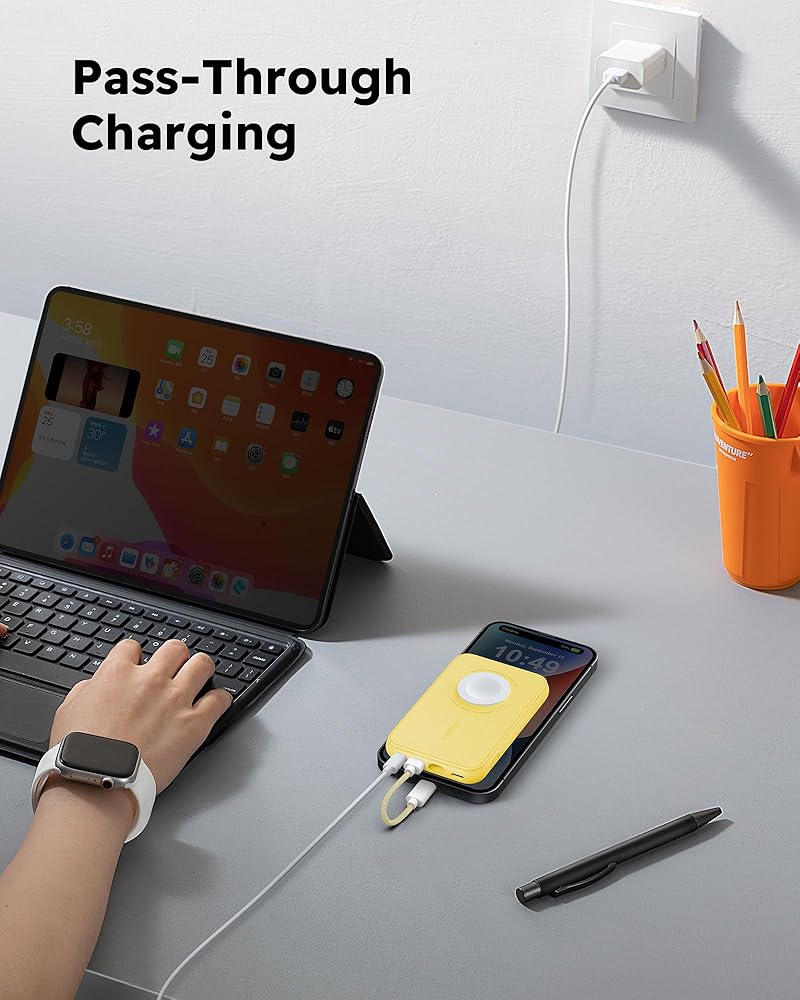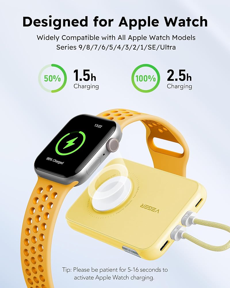 ✔️【التوافق: شاحن البطارية المحمول هذا متوافق على نطاق واسع مع سلسلة iPhone 15/14/13/12/Pro Max، وApple Watch 9/8/7/6/5/4/3/2/1/SE/Ultra، بالإضافة إلى أجهزة Sumsung Galaxy وGoogle Pixel وغيرها من الأجهزة أو الأجهزة اللوحية من النوع C.