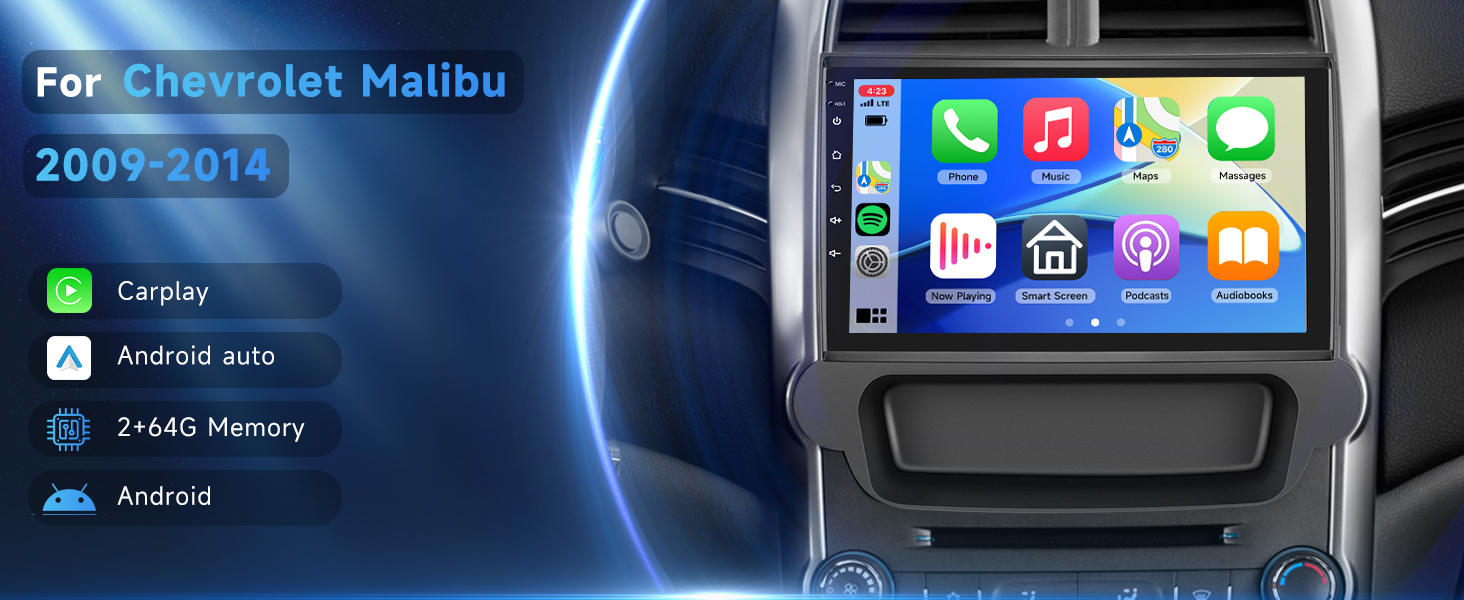 Wireless Carplay+ Android Auto: ستيريو سيارة Android لسيارة شيفروليه تشيفي ماليبو 2009-2014 متوافق مع apple carplay المتوافق مع الاتصال اللاسلكي (عبر البلوتوث وواي فاي أو كابل USB)، Android Auto السلكي (عبر كابل USB)، فقط قم بالاتصال بهاتفك الذكي، مما يسمح بتفوق التحكم بالمساعدة الصوتية وتسهيل الوصول إلى وظائف هاتفك بما في ذلك الموسيقى ونظام تحديد المواقع العالمي (GPS) والمكالمات والإشعارات والرسائل وغير ذلك الكثير