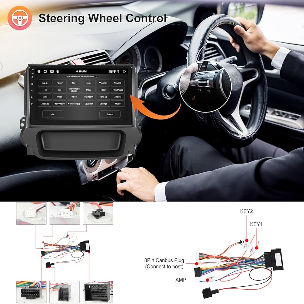 حزام التوصيل والتشغيل: ستيريو سيارة Android مزدوج الدين يناسب شيفروليه تشيفي ماليبو 2009 2010 2011 2012 2013 2014. يأتي مع Canbus وحزام USB الأصلي. ستيريو السيارة بشاشة تعمل باللمس متوافق مع التحكم في عجلة القيادة والكاميرا الخلفية ومكبر الصوت. يرجى التحقق من حجم فتحة لوحة القيادة الخاصة بسيارتك لمعرفة ما إذا كانت مناسبة قبل الطلب