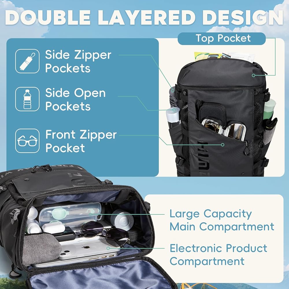 [سعة تخزين كبيرة] بسعة كبيرة 32 لتر، تتسع حقيبة الظهر للسفر هذه بسهولة لجميع أساسيات السفر الخاصة بك، بما في ذلك الأجهزة الصغيرة مثل المواقد المحمولة وبطانيات النزهة والكرسي القابل للطي وحتى مكبرات الصوت بلوتوث، مما يجعلها مثالية لتلك النزهات العفوية.