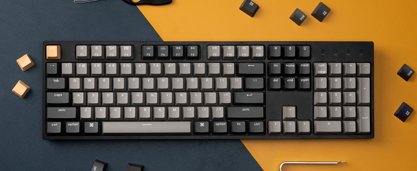 • تبديل التخطيطات بين نظامي التشغيل macOS وWindows - تم تصميم Keychron C2 Pro مع وضع تجربة مستخدمي Mac في الاعتبار مع الحفاظ على التوافق مع أجهزة Windows، ويأتي مزودًا بتبديل النظام ومجموعة إضافية من أغطية المفاتيح المخصصة لكل من أنظمة Windows وmacOS. يمكنك الآن حفظ تخطيطين مختلفين على لوحة المفاتيح، واحد لكل نظام.